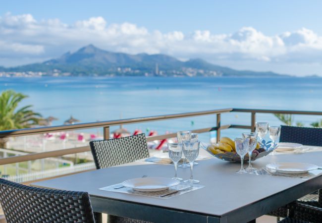 Este hermoso y clásico apartamento está ubicado en el primer piso, justo en la playa del Puerto Alcudia. Desde la acogedora terraza y el jardín privado tiene una vista fantástica de toda la bahía de Alcudia. Un lugar perfecto para admirar y disfrutar de los inolvidables amaneceres y puestas de sol. Las hamacas están listas para ti.