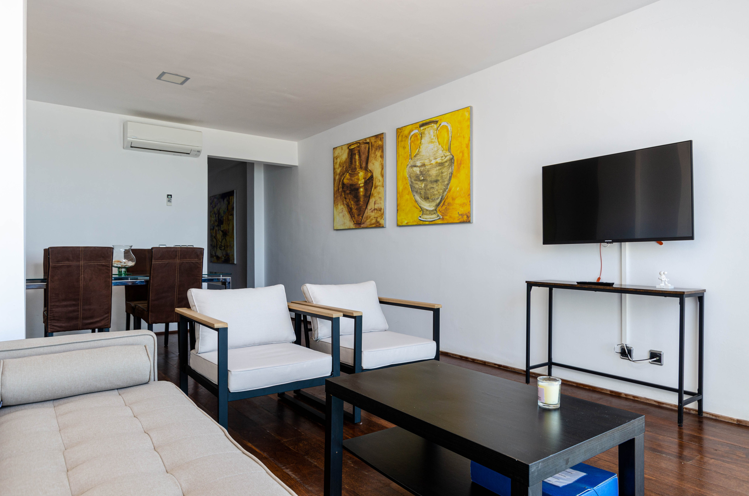 El alojamiento es muy confortable, aire acondicionado en el salón y los dormitorios, cocina bien equipada, dos baños, vistas al mar y una ubicación perfecta.