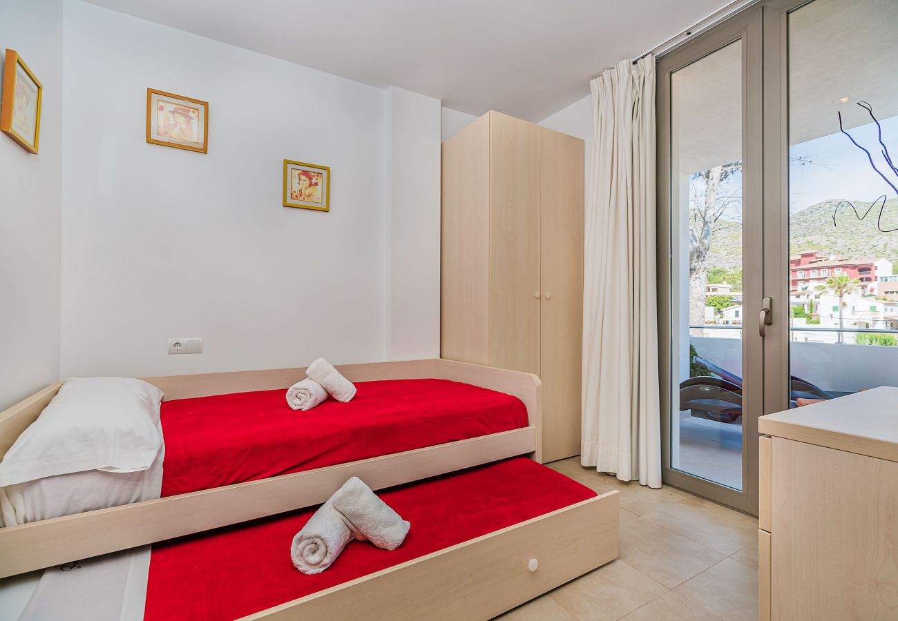 Preciosa casa a 50 metros de la playa de arena de Cala Molins en Cala San Vicente. Can Botana Casa 4 tiene 2 dormitorios dobles y 1 dormitorio con dos camas nido individuales (1 debajo de la otra). También tiene 2 baños equipados con ducha. Hay un balcón con sillas y mesas para comer al aire libre y disfrutar de las vistas que nos ofrece Cala Molins. Ofrecemos un total de 4 casas (número 2,3,4,7) adosadas idénticas en alquiler de vacaciones, todo en el mismo complejo con piscina comunitaria, con mobiliario moderno y cocina totalmente equipada. Hay aire acondicionado en todas habitaciones incluyendo zona de salón comedor. Todas las casas cuentan con acceso a internet wifi. Cala San Vicente cuenta con tiendas, supermercados, bares y restaurantes y se puede llegar fácilmente a pie. Es un lugar ideal para todos los amantes de la playa que buscan un alojamiento cómodo, tranquilo y contemporáneo.
