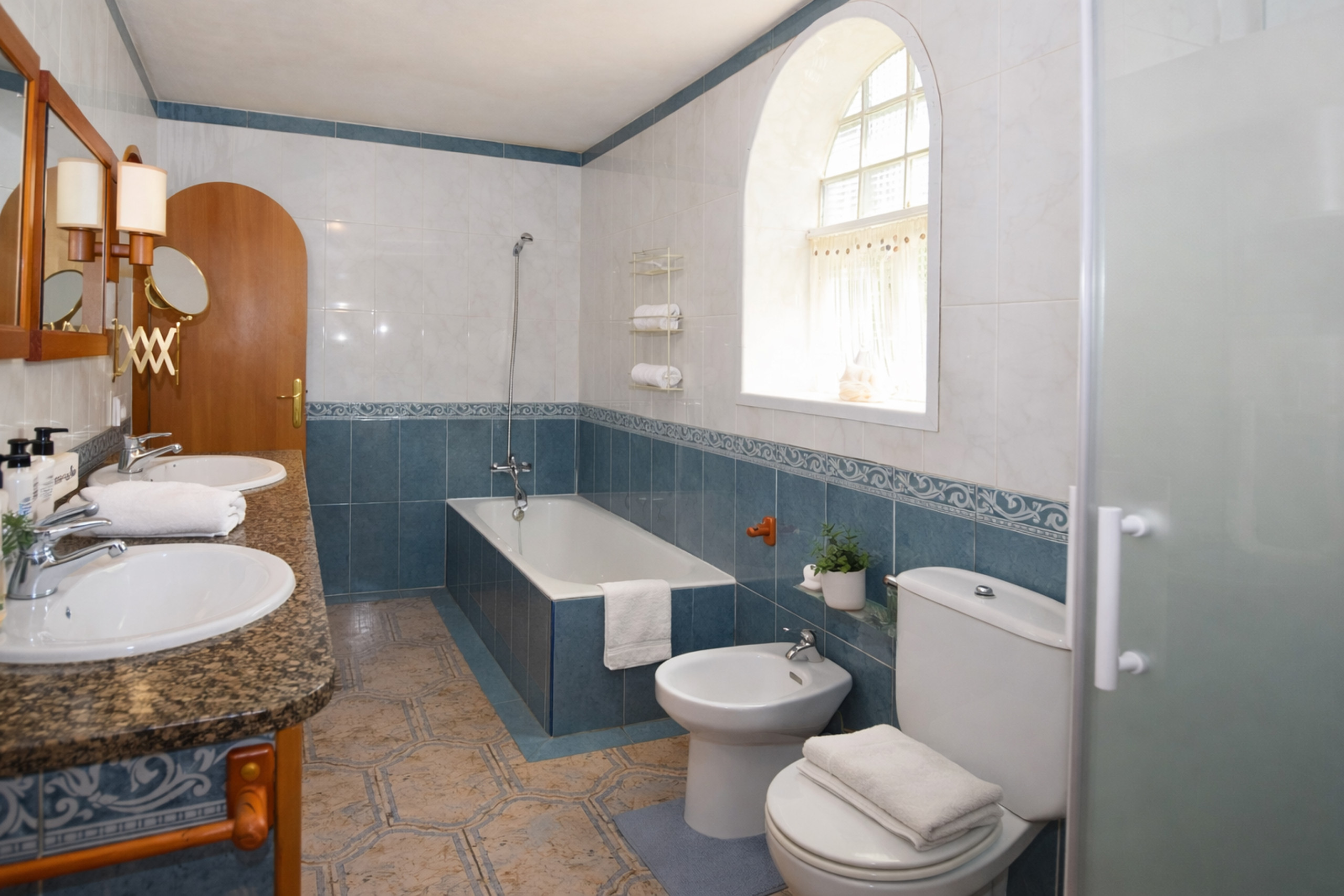 Cinco habitaciones: 2 con cama doble, tres más con 2 camas individuales y tres baños: dos con bañera y uno con ducha , completan las zonas de descanso.