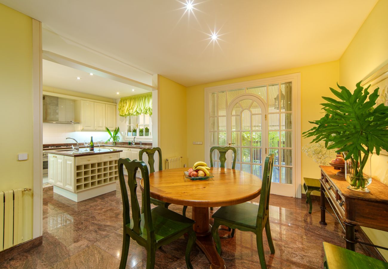 En el interior, Can Mandol sorprende con dos cocinas americanas completamente equipadas, ideales para grupos que deseen cocinar con comodidad. Los espacios comunes son amplios y luminosos, decorados con un estilo clásico y elegante, e incluyen dos salones con cómodos sofás y zonas de comedor perfectamente acondicionadas para el descanso y la convivencia.