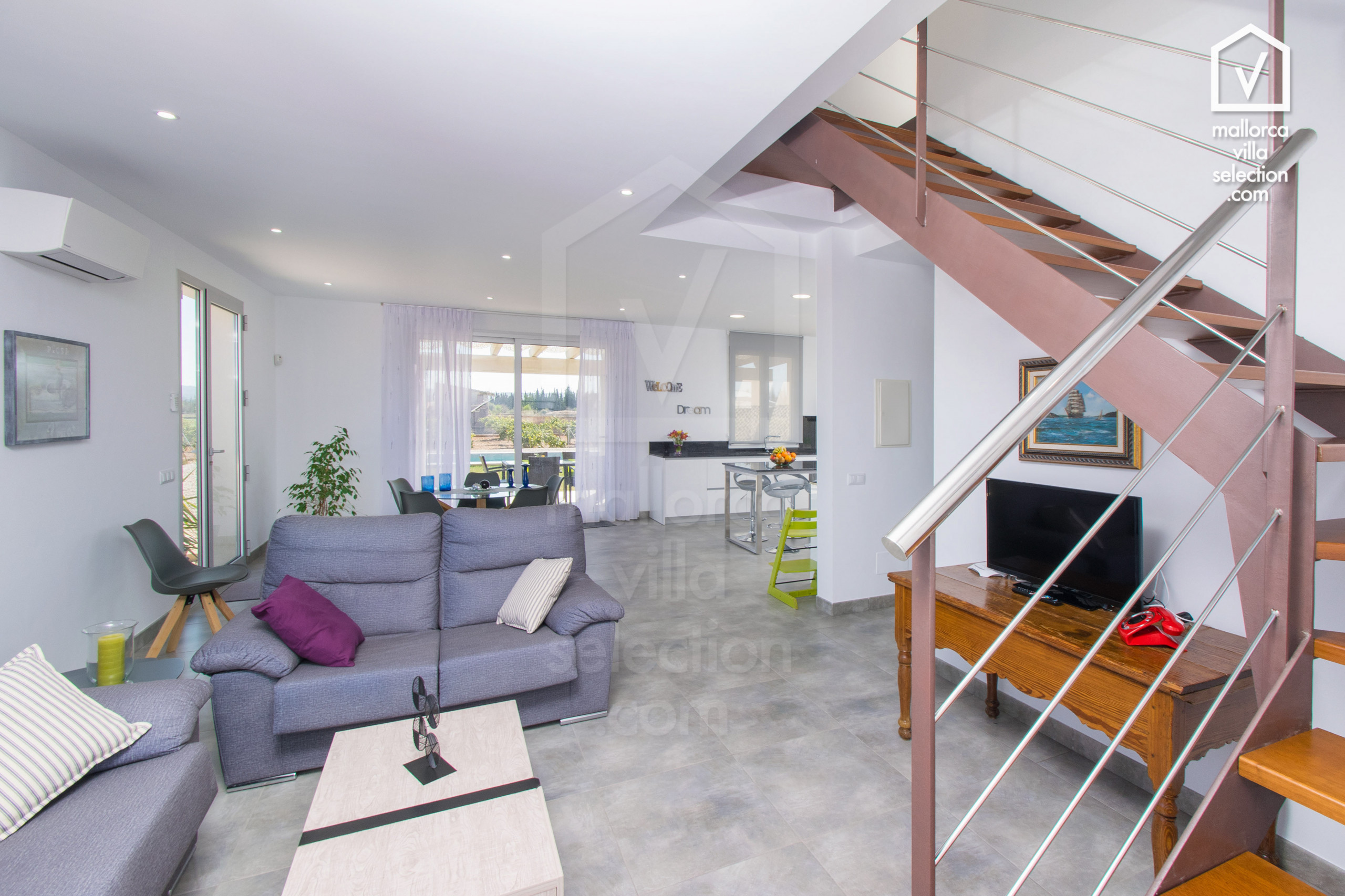 La casa les recibirá en la planta baja con una sala de estar y salón-comedor muy confortables, de estilo rústico mallorquín y con decoración de alta calidad. La cocina, independiente con vitrocerámica y bien equipada, junto al amplio comedor. Un dormitorio, una coladuría y un baño se encuentran en la planta baja, los demás están en el primer piso.