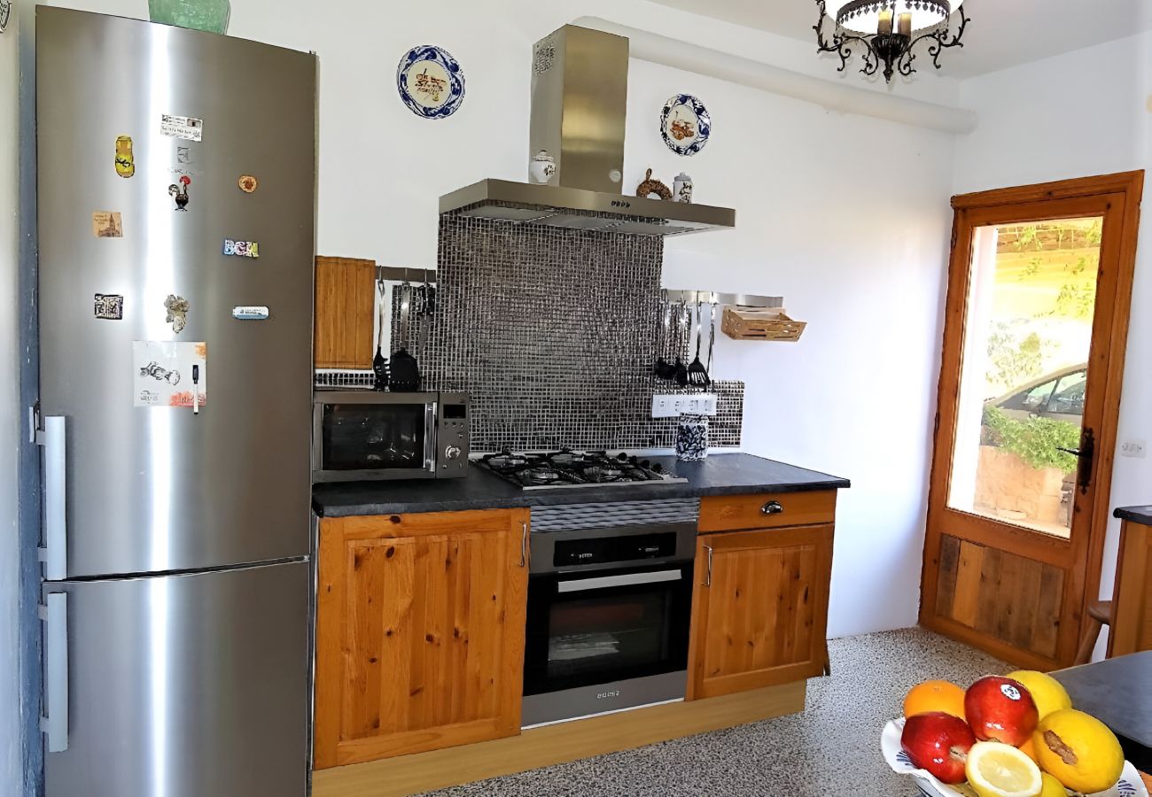 Cerca de la casa principal hay una pequeña cocina exterior con barbacoa.