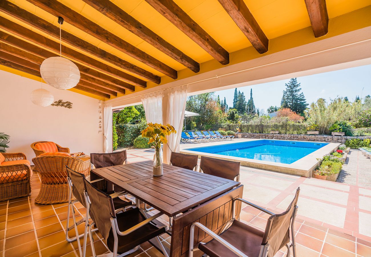 The house is set in an very quiet location on the edge of Pollenca with views to open country all around. The house and garden a very spacious, well kept and homely. We loved relaxing , playing and eating outside. We had lover más