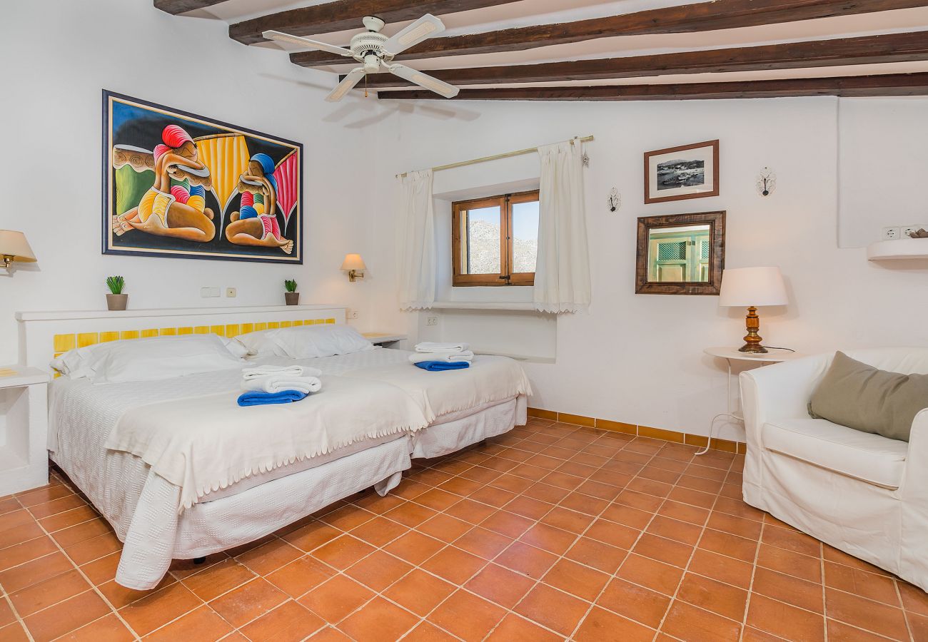 Es una casa muy luminosa y espaciosa que cuenta con 2 dormitorios (uno doble, uno con cama 140cm y una cama individual 90cm), un cuarto de baño grande, cocina moderna y espaciosa sala de estar. Hay preciosas vistas de la Sierra de Tramuntana desde la casa principal. Los techos son altos, decorada con pinturas modernas que dan un toque mediterráneo a la misma. La sala de estar conduce a la zona de comedor con una mesa grande ideal para las comidas en familia, así como un área de estudio con vistas a los amplios jardines. La casa dispone de aire acondicionado, calefacción central, TV, DVD, equipo de música, WiFi y una chimenea.