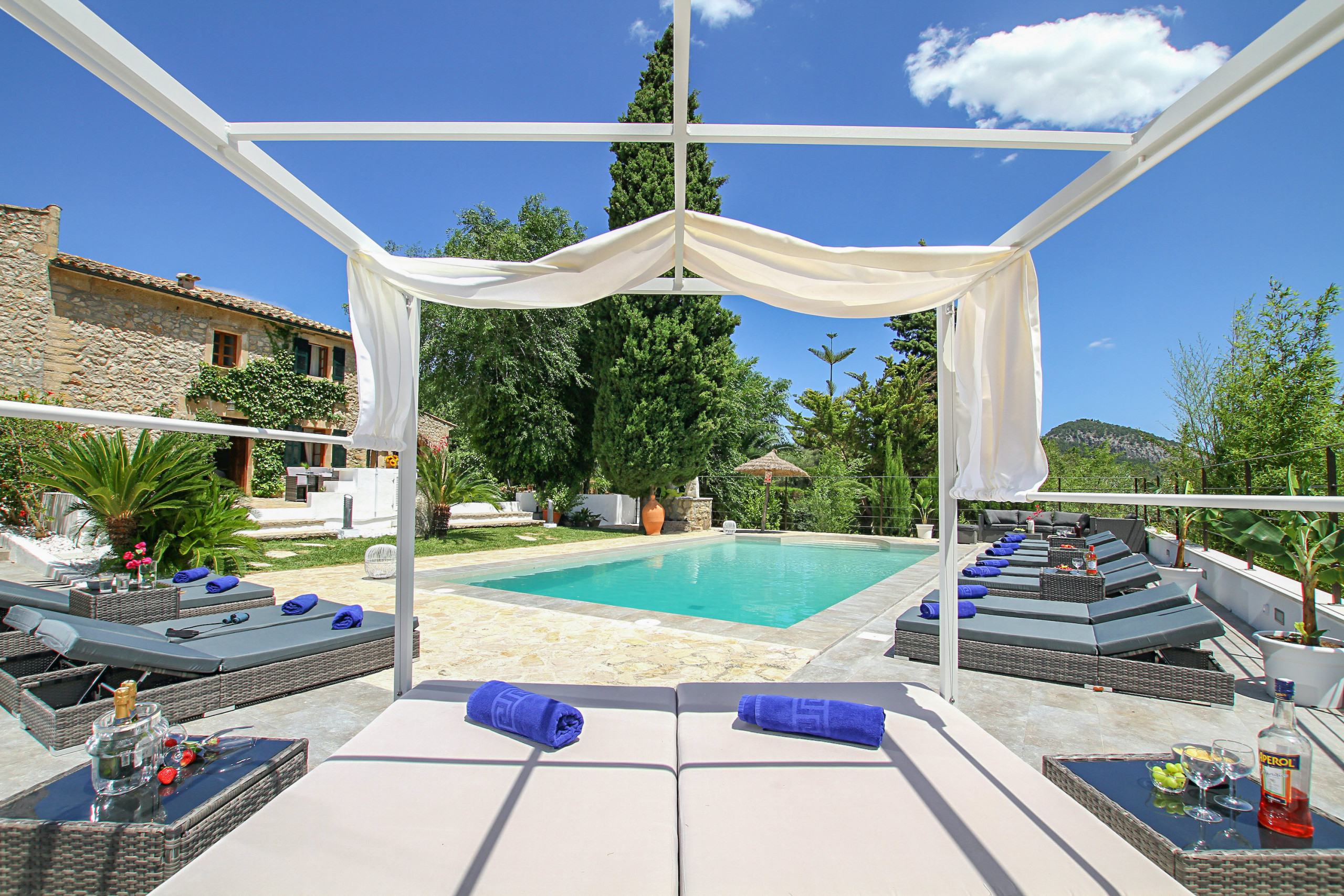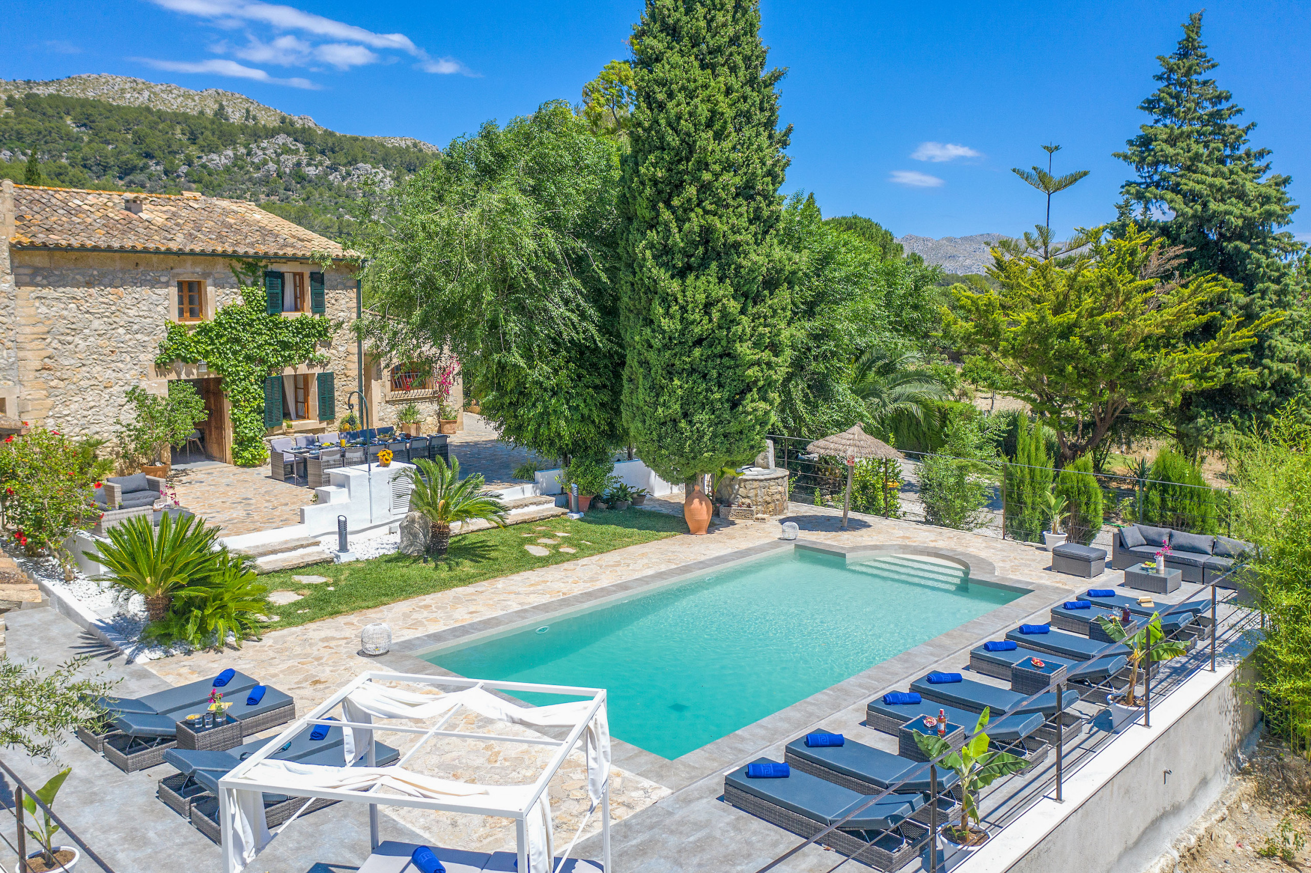 La casa ha sido cuidadosamente renovada y guarda un estilo tradicional mallorquin mezclado con una decoración moderna.