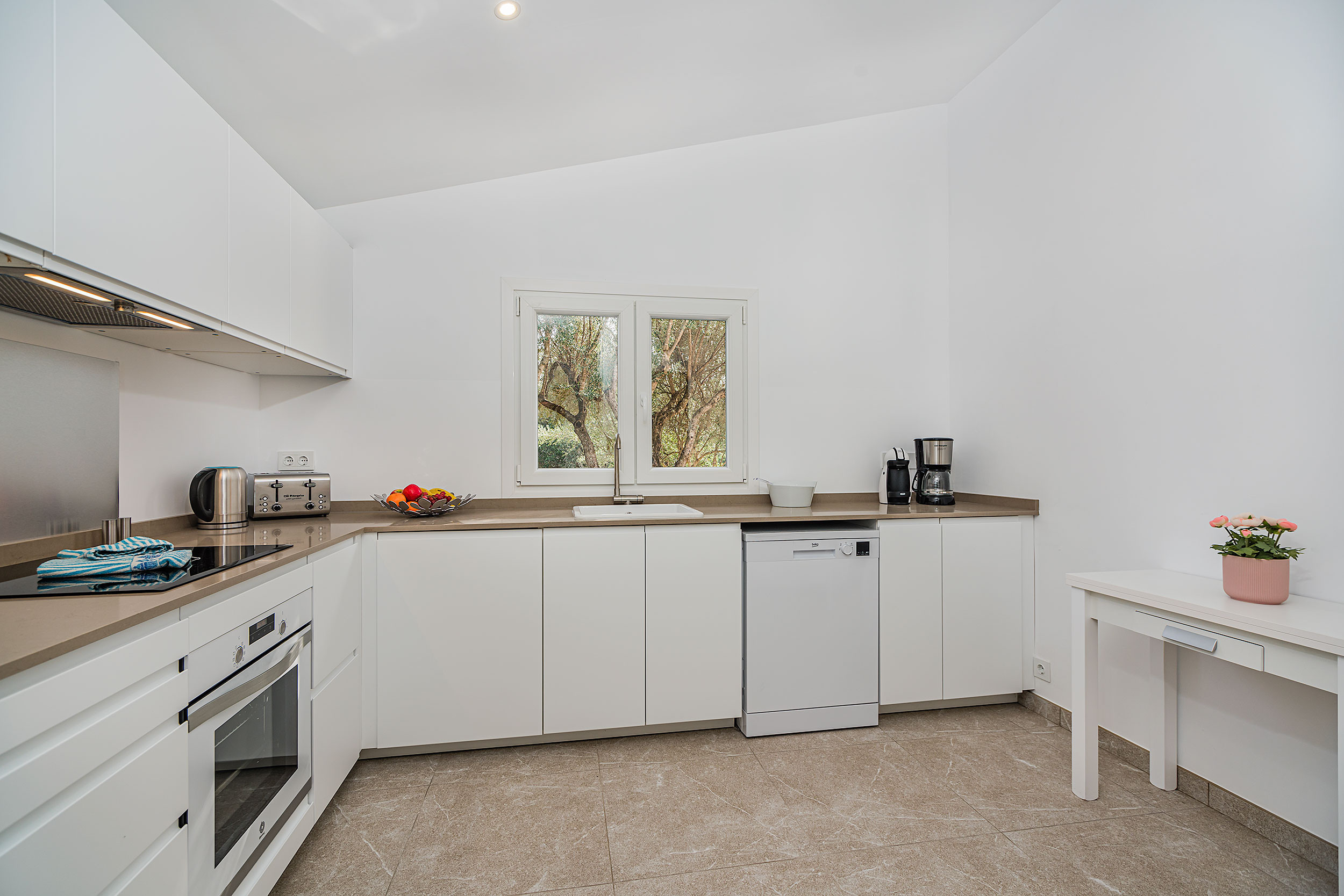 Situado en la tranquila zona de Ternelles, a un corto paseo del centro de Pollensa, Romaní es un destino con mucha privacidad - ideal para las vacaciones. Dispone de un amplio camino de entrada que le lleva a través de los naranjos hasta la zona de aparcamiento junto a la casa. Esta propiedad de reciente construcción ofrece tres dormitorios con aire acondicionado, uno doble con baño en suite y dos con dos camas individuales que comparten un baño. Hay un luminoso salón-comedor abierto y una cocina separada totalmente equipada. En el exterior hay una gran terraza cubierta amueblada, con barbacoa y mesa de ping pong. Un caminito te lleva desde la casa a la zona de la piscina con tumbonas. Un lugar ideal para tomar el sol y disfrutar de refrescarse en la piscina. Romaní también ofrece en exclusiva a sus huéspedes - una pista de tenis.