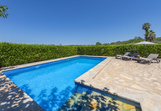La hermosa finca "Plantina" para 6 personas con aire acondicionado frio/calor, consta de 3 luminosas habitaciones dobles, dos cuartos de baños (uno con bañera y otro con ducha), una cocina totalmente equipada abierta al salon/comedor, una terraza cubierta con barbacoa donde poder disfrutar de un impresionante atardecer rodeada de jardines y naturaleza, amplia piscina con tumbonas y privacidad.