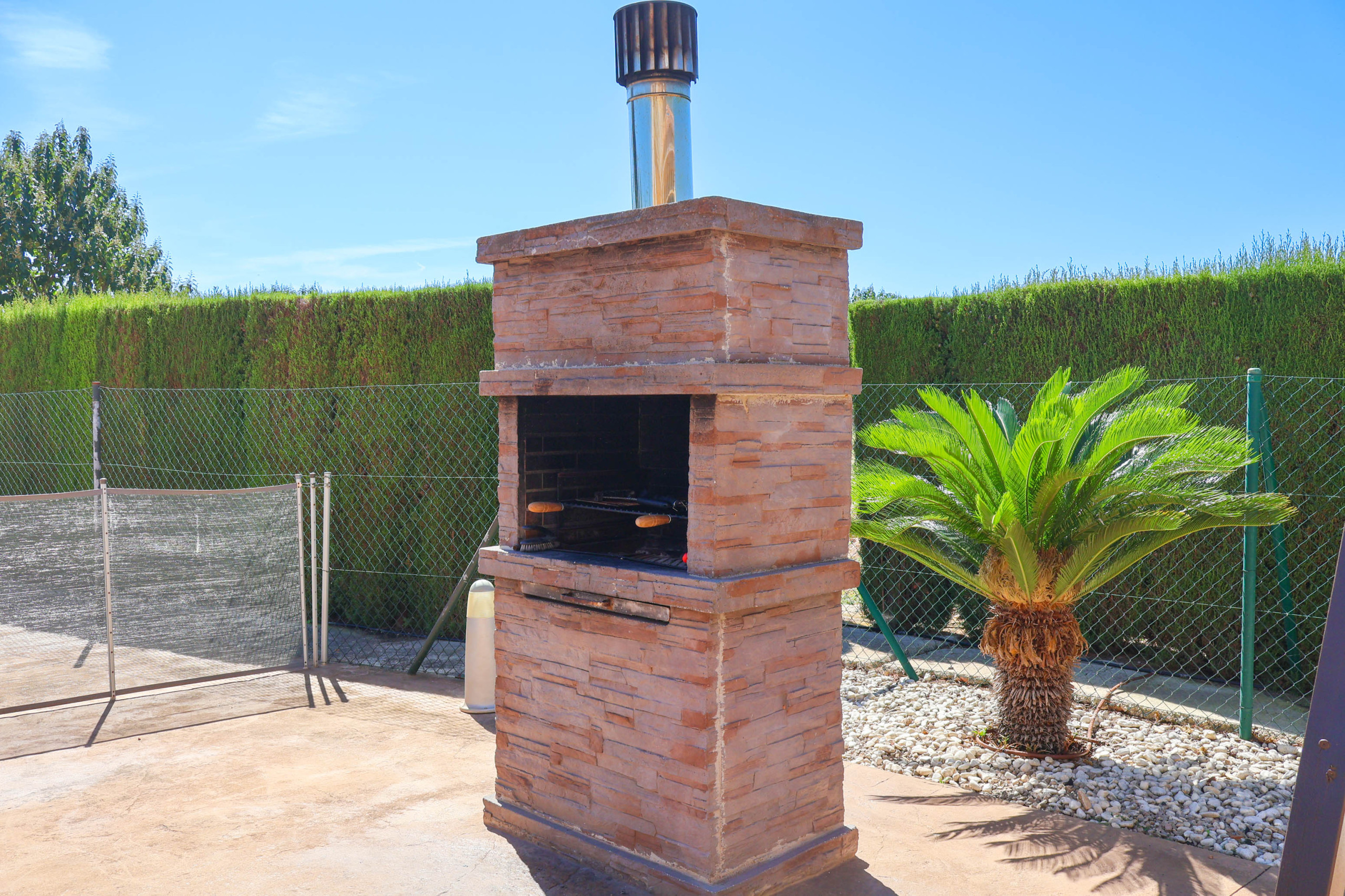 En el exterior también podemos gozar de la fresca bajo el porche en los sofás exteriores, o disfrutar de comer en compañía en el espacio de comedor exterior aprovechando el fantástico grill del que dispone la terraza para cocinar los mejores platos a la brasa.