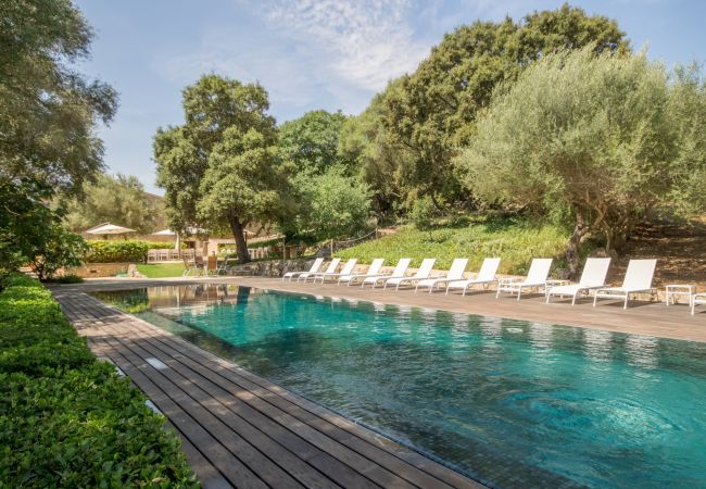 Imagina tus vacaciones en esta magnífica posesión mallorquina, una verdadera finca hotel rodeada de viñedos, almendros y olivos, en el encantador municipio de Alcudia. Con 8 habitaciones dobles, 8 baños en suite, una impresionante piscina XXL de 16m x 4m y múltiples terrazas, Son Simo Vell es el refugio perfecto para hasta 16 personas.