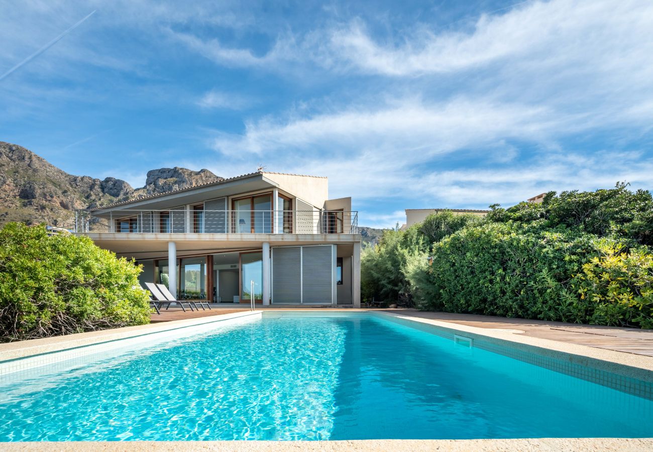 Moderna casa vacacional con piscina privada y vistas al mar para hasta 9 personas, con 5 cómodas habitaciones, 4 baños, aire acondicionado (frío/calor), luminosa sala de estar con comedor integrado, TV vía satélite, Internet WiFi, moderna cocina totalmente equipada con isla de cocción , zona exterior bien cuidada con terraza amueblada, zona de barbacoa y comedor exterior, azotea con impresionantes vistas al mar, en la zona de Betlem, Mallorca
