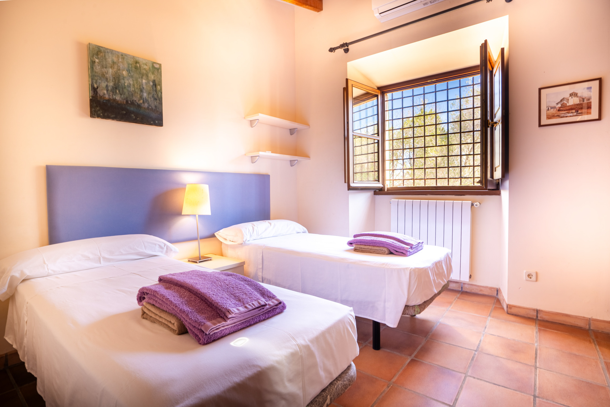 La finca consta de dos casas independientes, cada una con su propia cocina y sala de estar. La casa principal te recibe con una amplia entrada, chimenea y una moderna cocina equipada con todas las comodidades. En la planta baja, encontrarás una habitación espaciosa con baño en suite y una sala de televisión. Subiendo las escaleras, descubrirás tres habitaciones adicionales, todas con baño en suite. La casa más pequeña cuenta con un salón comedor, cocina con office y dos habitaciones dobles, ambas con baño en suite. En total, la villa cuenta con 6 dormitorios y tiene capacidad para 12 personas.