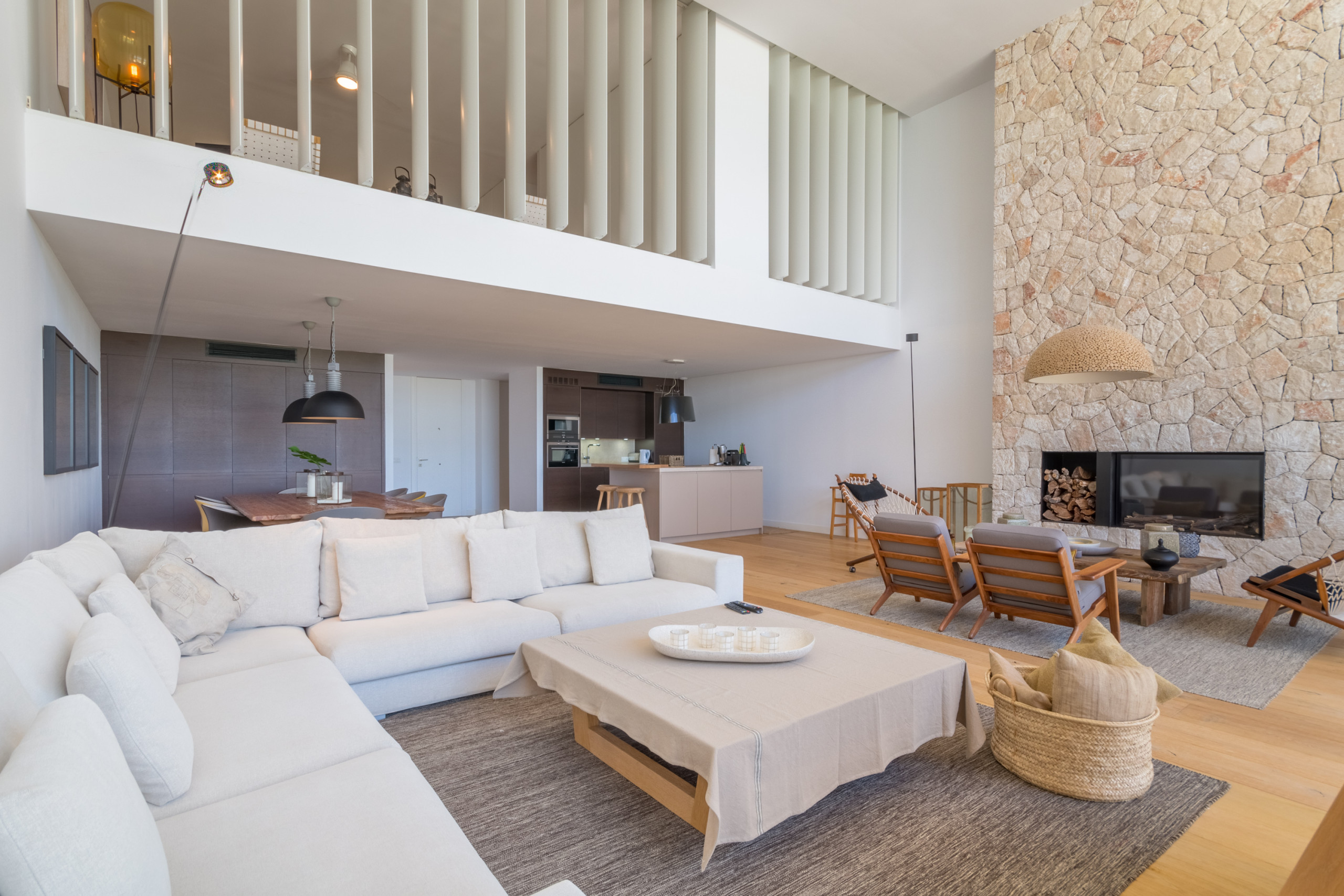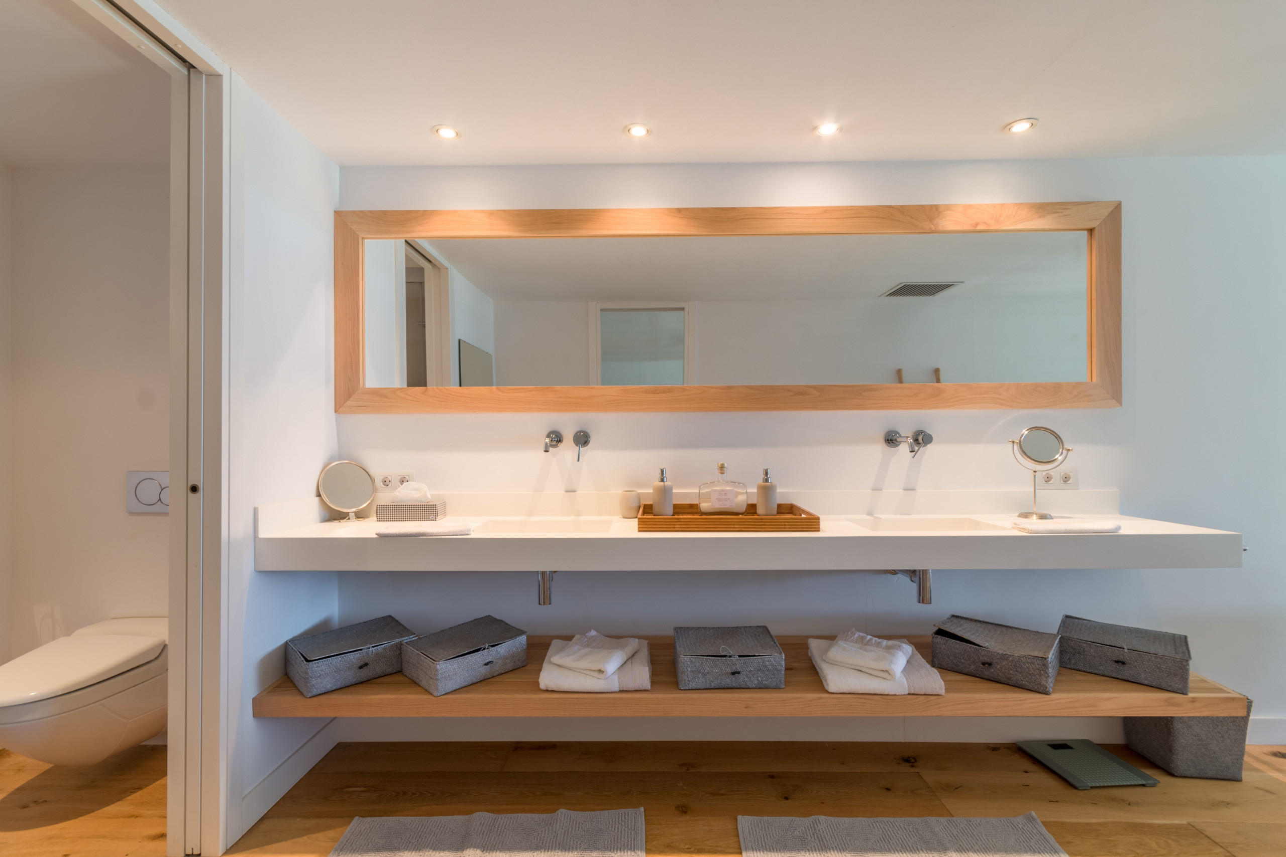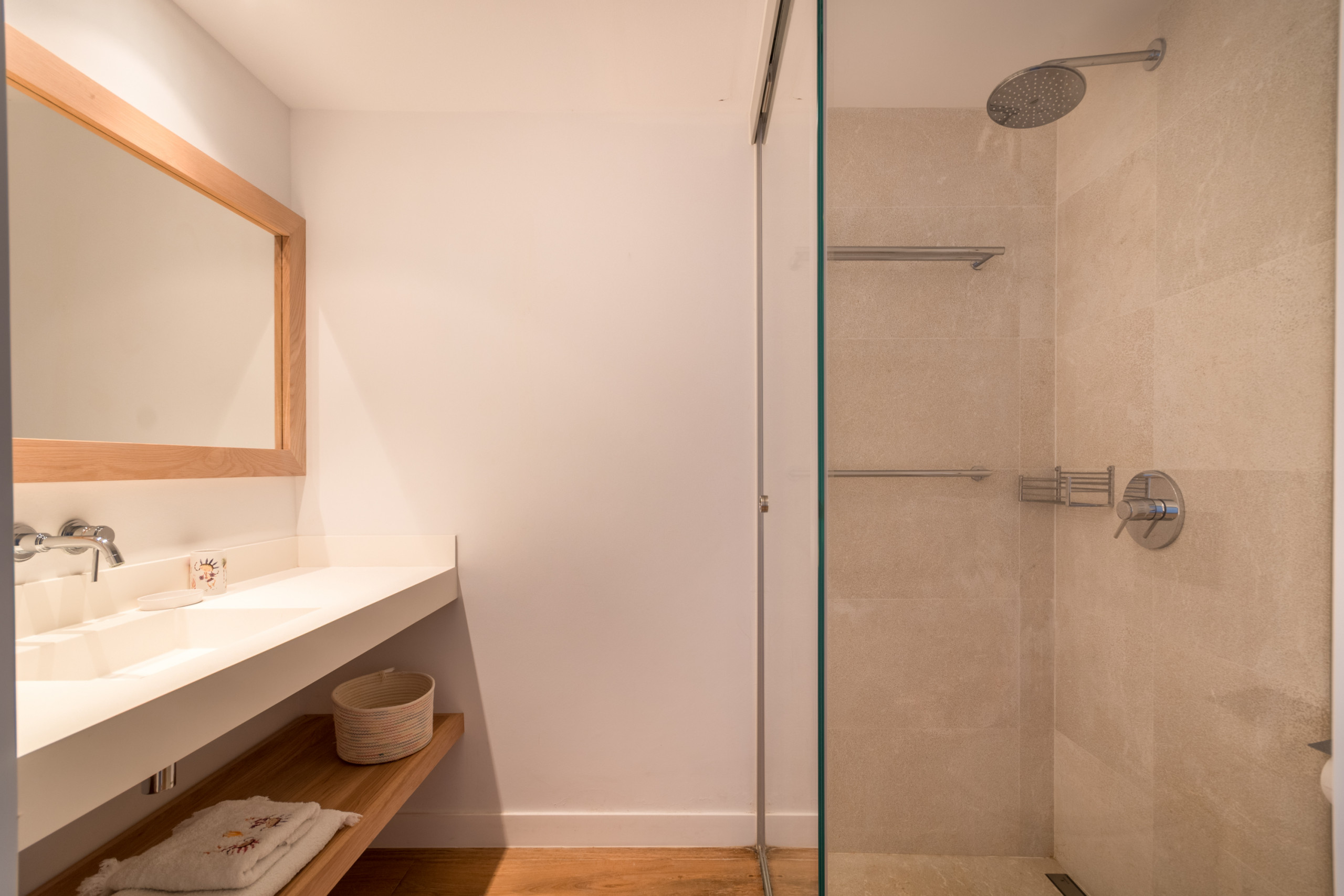 Alojando hasta 8 huéspedes, incluido 1 bebé, la villa cuenta con 4 amplias habitaciones dobles, cada una con su propio baño en suite para una privacidad completa. Distribuida en 2 plantas, los interiores se definen por tonos neutros, materiales naturales y abundante luz, creando una atmósfera cálida y sofisticada. La zona de estar de planta abierta se conecta con una cocina moderna totalmente equipada y se extiende hacia una terraza luminosa amueblada con vistas al mar. La habitación principal destaca por una bañera exenta con vistas al Mediterráneo, mientras que el resto de las habitaciones ofrecen comodidad e individualidad. Las comodidades incluyen aire acondicionado, calefacción por suelo radiante, chimenea, televisión internacional, WiFi, caja fuerte e instalaciones de lavandería. En el exterior, los huéspedes disfrutan de una terraza privada vallada, un balcón y acceso directo a la playa.
