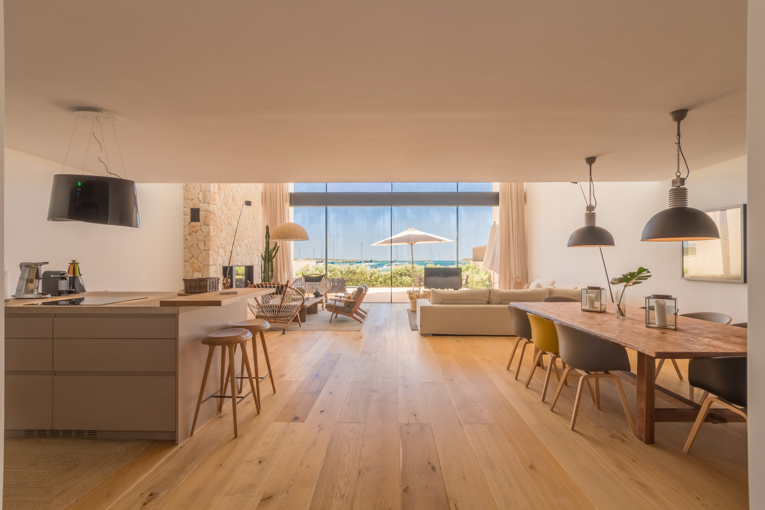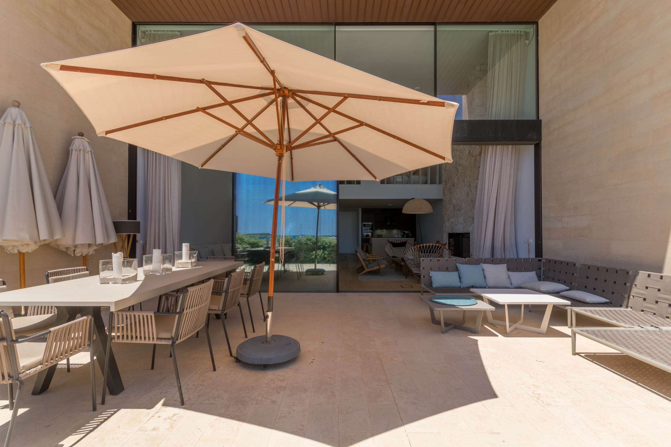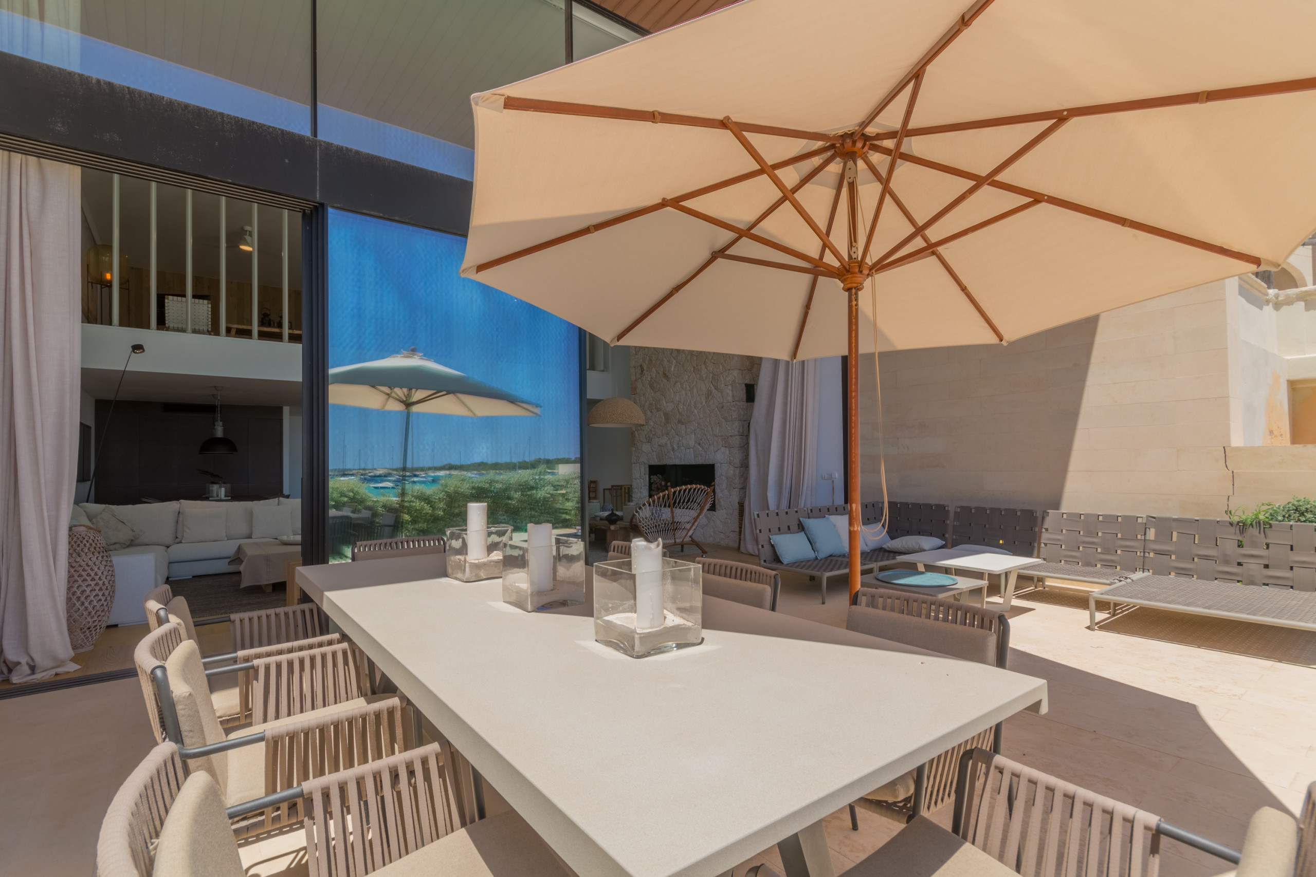Ubicada directamente en la costa de Colònia de Sant Jordi, la villa está a poca distancia a pie de supermercados, boutiques, bares y restaurantes como el reconocido Sal de Coco y Cassai Beach House. A solo 1,2 millas encontrará playas de arena como Platja Es Port y Platja Es Dolç, mientras que tesoros naturales como Es Trenc y Caló des Moro están a poca distancia en coche. La zona ofrece infinitas oportunidades: paseos junto al mar, deportes acuáticos, visitas al Parque Nacional de Cabrera y encantadores pueblos cercanos, todo con Palma a menos de una hora.