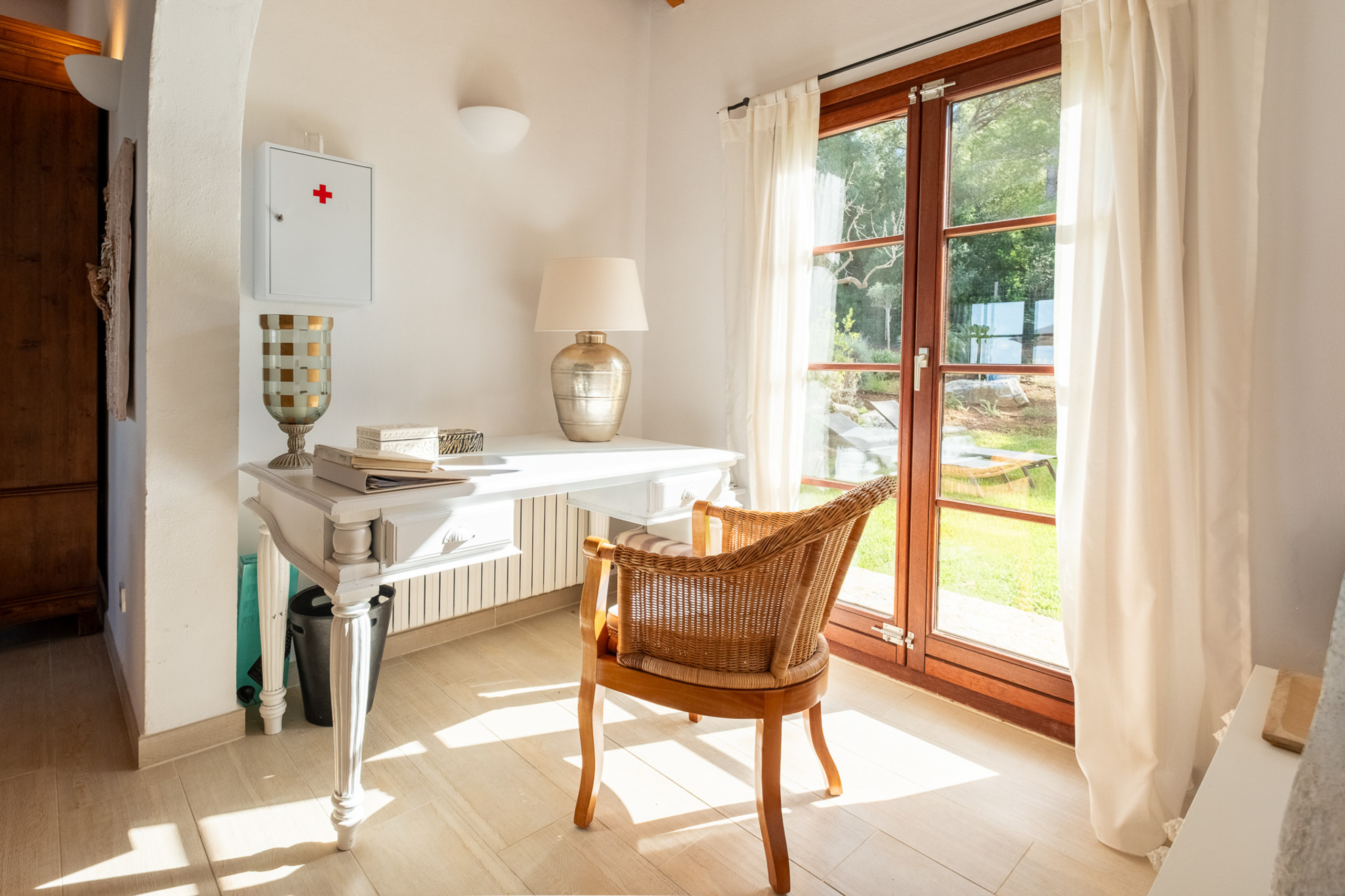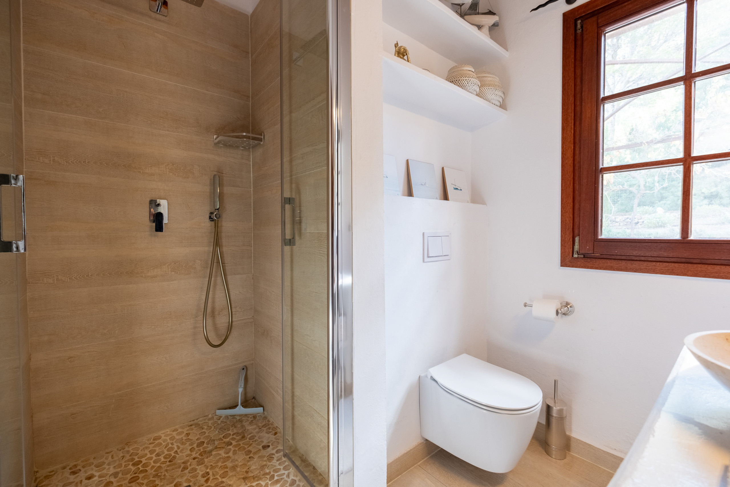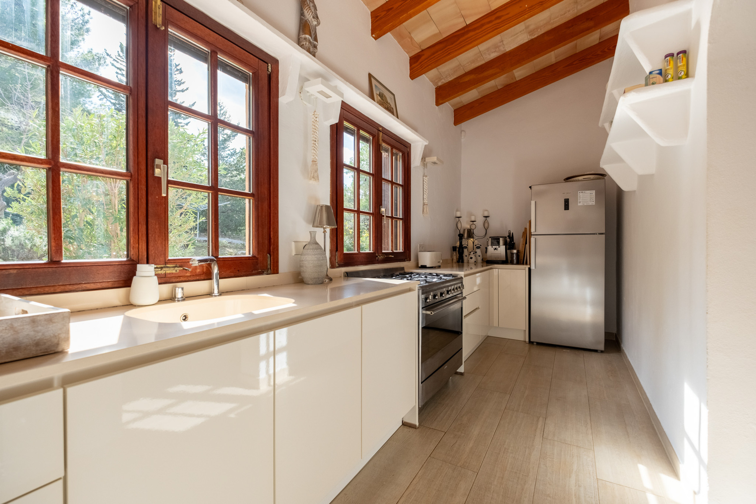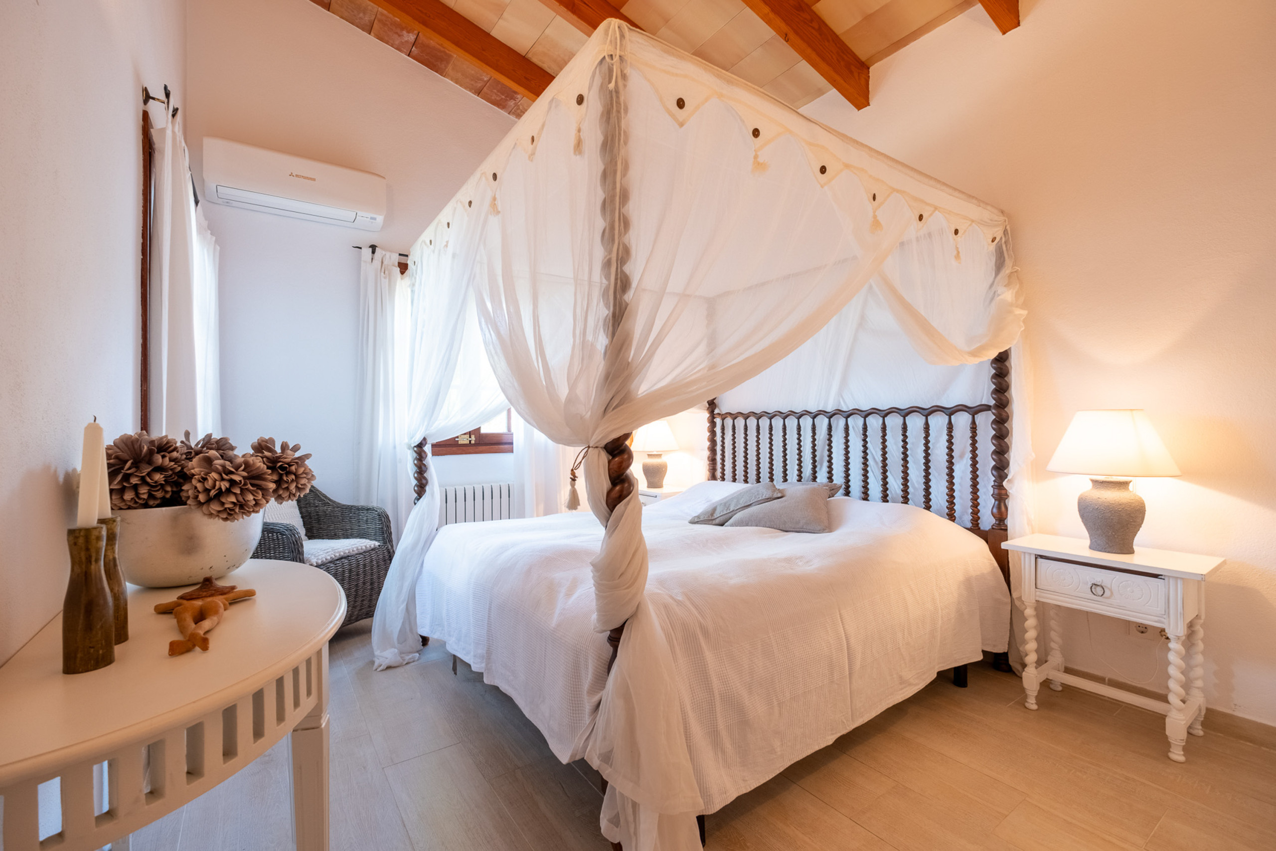 Villa Pentinat se alza sobre una generosa parcela de más de 3.200 m² en la pintoresca Colonia de Sant Pere, dentro del municipio de Artà. La casa, con una superficie construida de 155 m², está diseñada para acoger cómodamente hasta 6 personas gracias a sus 3 dormitorios dobles, espaciosos y luminosos. Cuenta con 2 baños bien distribuidos: uno con ducha y otro con bañera y ducha, lo que garantiza privacidad y funcionalidad para todos los huéspedes. El interior combina un estilo acogedor con detalles funcionales: aire acondicionado, calefacción por bomba de calor, chimenea para las noches frescas, WiFi, televisión con canales internacionales, caja fuerte y una cocina independiente totalmente equipada con electrodomésticos de alta calidad y todos los utensilios necesarios. En el exterior, su impresionante piscina privada de 5x6 metros ubicada en una posición elevada ofrece vistas despejadas hacia el entorno natural, acompañada de un amplio solárium, terraza con zona chill-out y jardín mediterráneo. La zona de barbacoa invita a disfrutar de agradables veladas al aire libre. El parking privado para varios vehículos y el cerramiento perimetral aportan un plus de seguridad y tranquilidad.