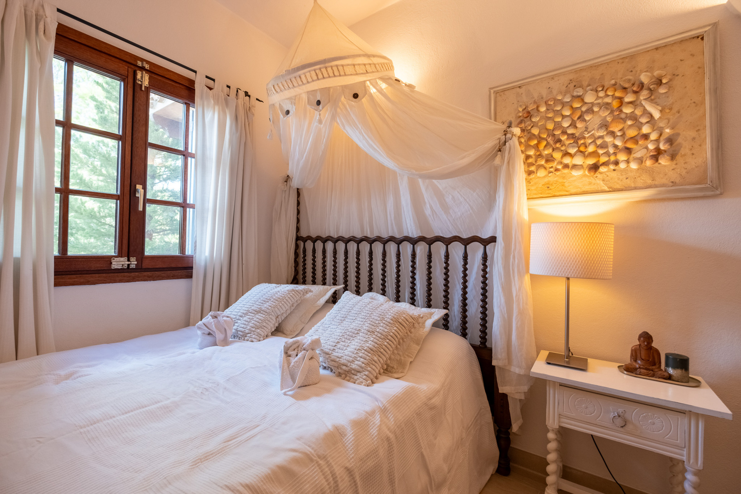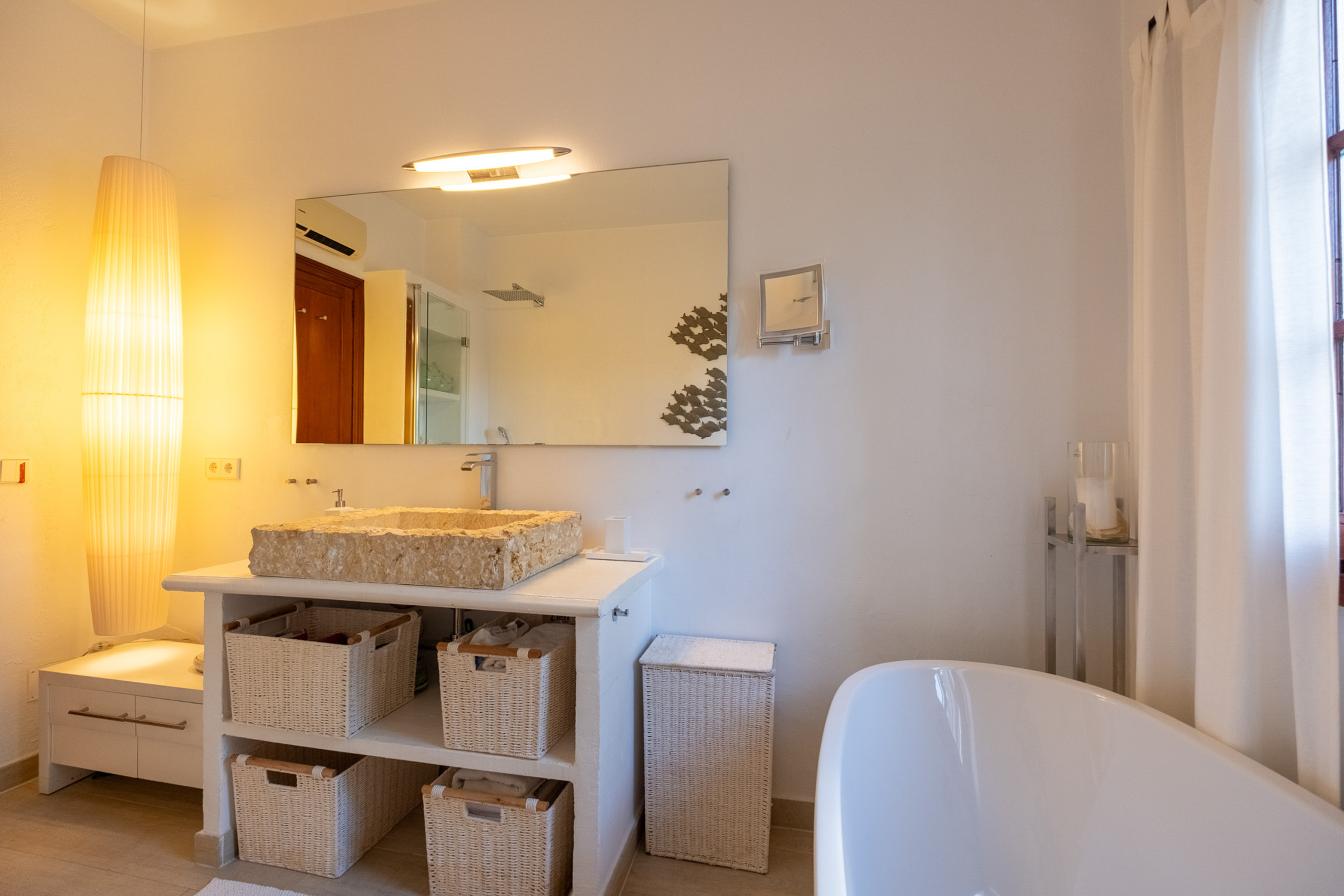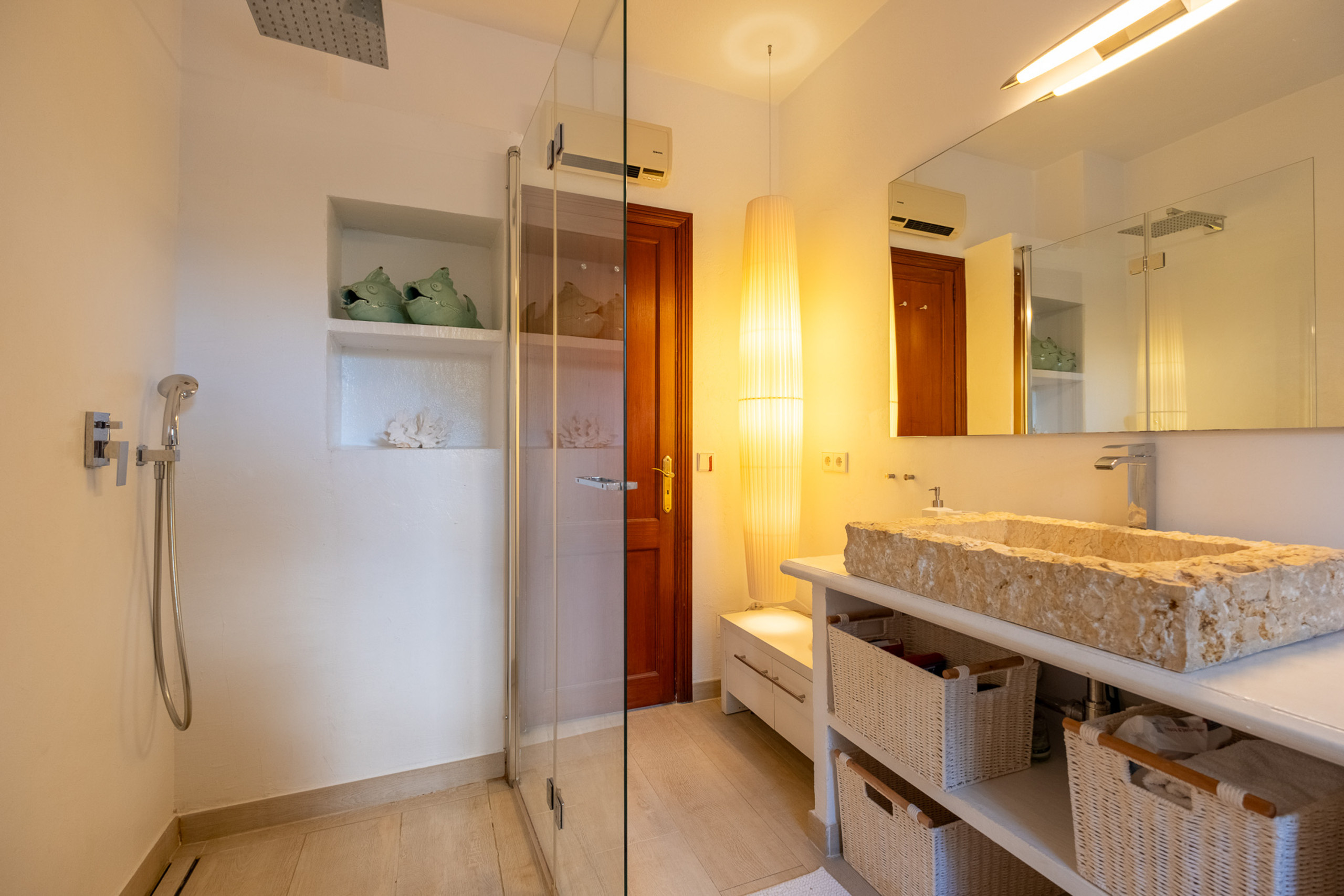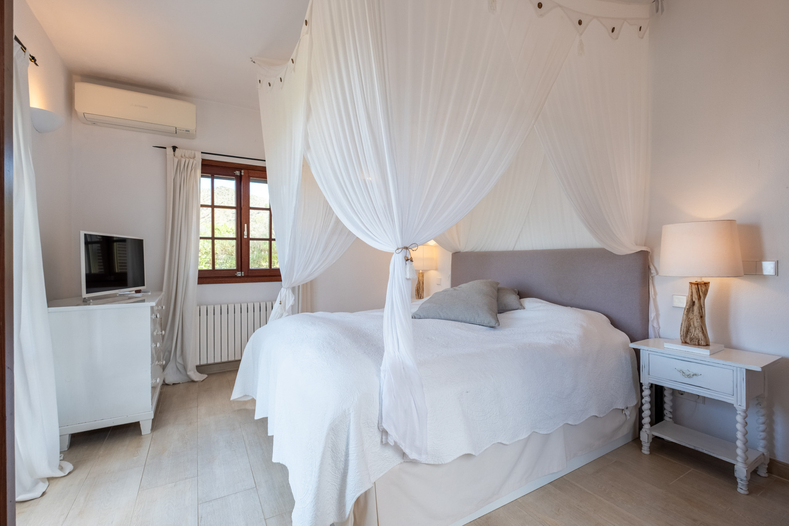 Villa Pentinat se alza sobre una generosa parcela de más de 3.200 m² en la pintoresca Colonia de Sant Pere, dentro del municipio de Artà. La casa, con una superficie construida de 155 m², está diseñada para acoger cómodamente hasta 6 personas gracias a sus 3 dormitorios dobles, espaciosos y luminosos. Cuenta con 2 baños bien distribuidos: uno con ducha y otro con bañera y ducha, lo que garantiza privacidad y funcionalidad para todos los huéspedes. El interior combina un estilo acogedor con detalles funcionales: aire acondicionado, calefacción por bomba de calor, chimenea para las noches frescas, WiFi, televisión con canales internacionales, caja fuerte y una cocina independiente totalmente equipada con electrodomésticos de alta calidad y todos los utensilios necesarios. En el exterior, su impresionante piscina privada de 5x6 metros ubicada en una posición elevada ofrece vistas despejadas hacia el entorno natural, acompañada de un amplio solárium, terraza con zona chill-out y jardín mediterráneo. La zona de barbacoa invita a disfrutar de agradables veladas al aire libre. El parking privado para varios vehículos y el cerramiento perimetral aportan un plus de seguridad y tranquilidad.