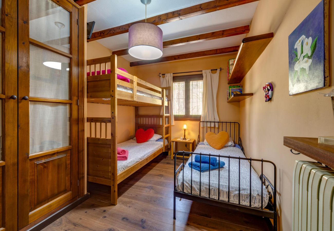 La villa dispone de 3 dormitorios: dos con cama doble, uno de ellos con baño en suite con ducha y bañera, y un tercero con una litera y una cama adicional, ideal para niños. Además, hay dos baños más con ducha. Para asegurar una estancia cómoda en cualquier época del año, la casa está equipada con calefacción central, Wifi, lavadora, secadora, plancha, tabla de planchar y aspiradora.