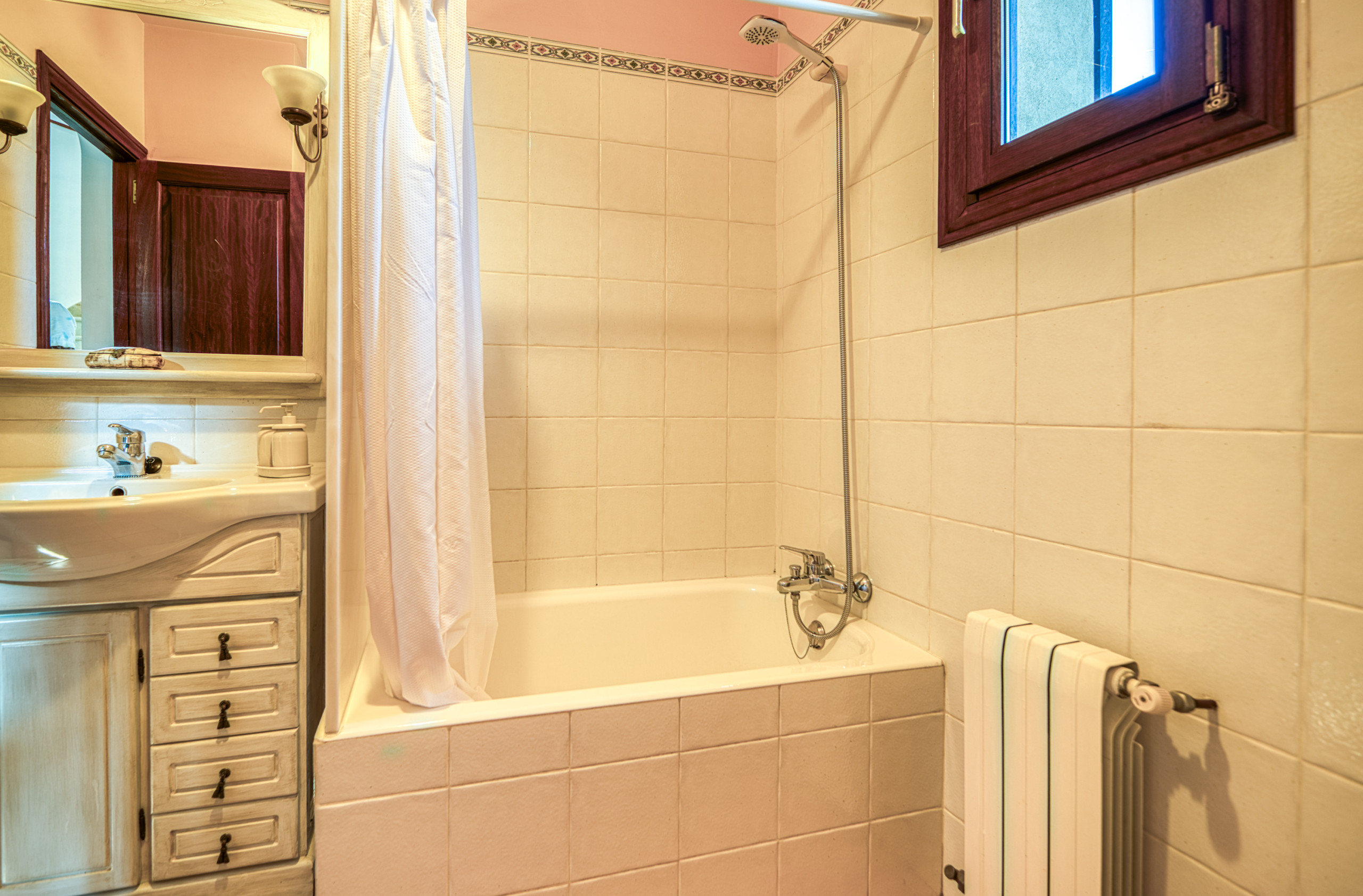 La finca destaca por su ubicación tranquila, las vistas preciosas y la piscina privada de cloro de 40 m2 y una profundidad entre 0.6 a 1.7 metros. Alrededor, se extiende una terraza amueblada con hamacas, sillas de jardín, mesa de ping-pong y sombrilla. A continuación encontramos el porche amueblado y al otro lado la zona barbacoa para celebrar grandes veladas. El porche da acceso a la cocina bien equipada, incluyendo una vitro cerámica y un lavavajillas. Nuestros huéspedes pueden elegir entre 3 dormitorios, uno con cama doble de 1,35 metros, armario y ventilador y un baño con bañera y secador de pelo. En la primera planta encontramos 2 habitaciones más, uno con cama doble de 1,5 metros y otro con 2 camas individuales; estos dos dormitorios dipsonen de aire acondicionado. El salón cuenta con sofás cómodas y una televisión con satélite. Las habitaciones en la primera planta tienen unas vistas espectaculares sobre las montañas. El equipamiento de la casa incluye Wifi, una lavadora, una plancha/tabla de planchar y una cuna/trona bajo petición.