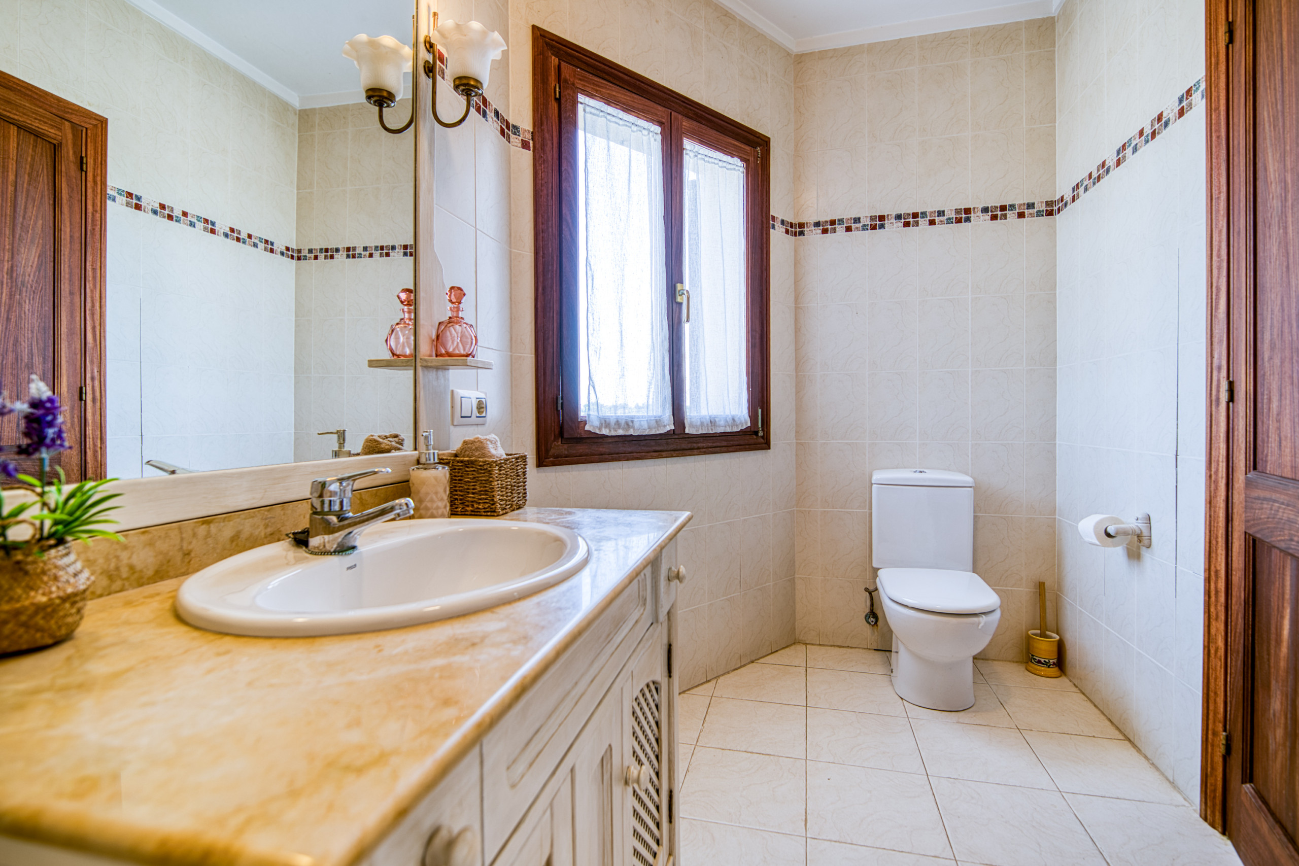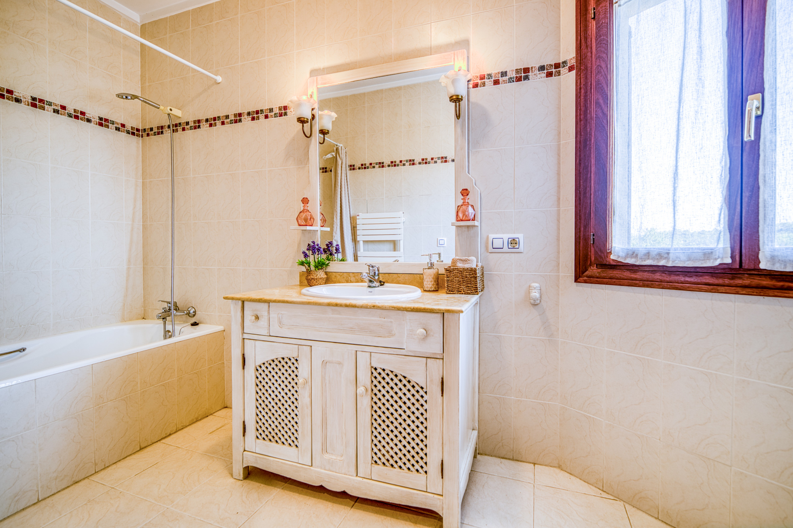 En el exterior, un extenso jardín privado y vallado te regala vistas panorámicas a la montaña. Allí destaca una magnífica piscina de 8x4 metros, rodeada de un solárium con tumbonas para empaparte del sol mallorquín. La zona de barbacoa, con mobiliario de jardín y un espacio de picnic, es el escenario perfecto para almuerzos al aire libre y momentos inolvidables entre familia y amigos. Cada rincón ha sido cuidadosamente diseñado para ofrecerte el equilibrio perfecto entre funcionalidad y el encanto auténtico de Mallorca.