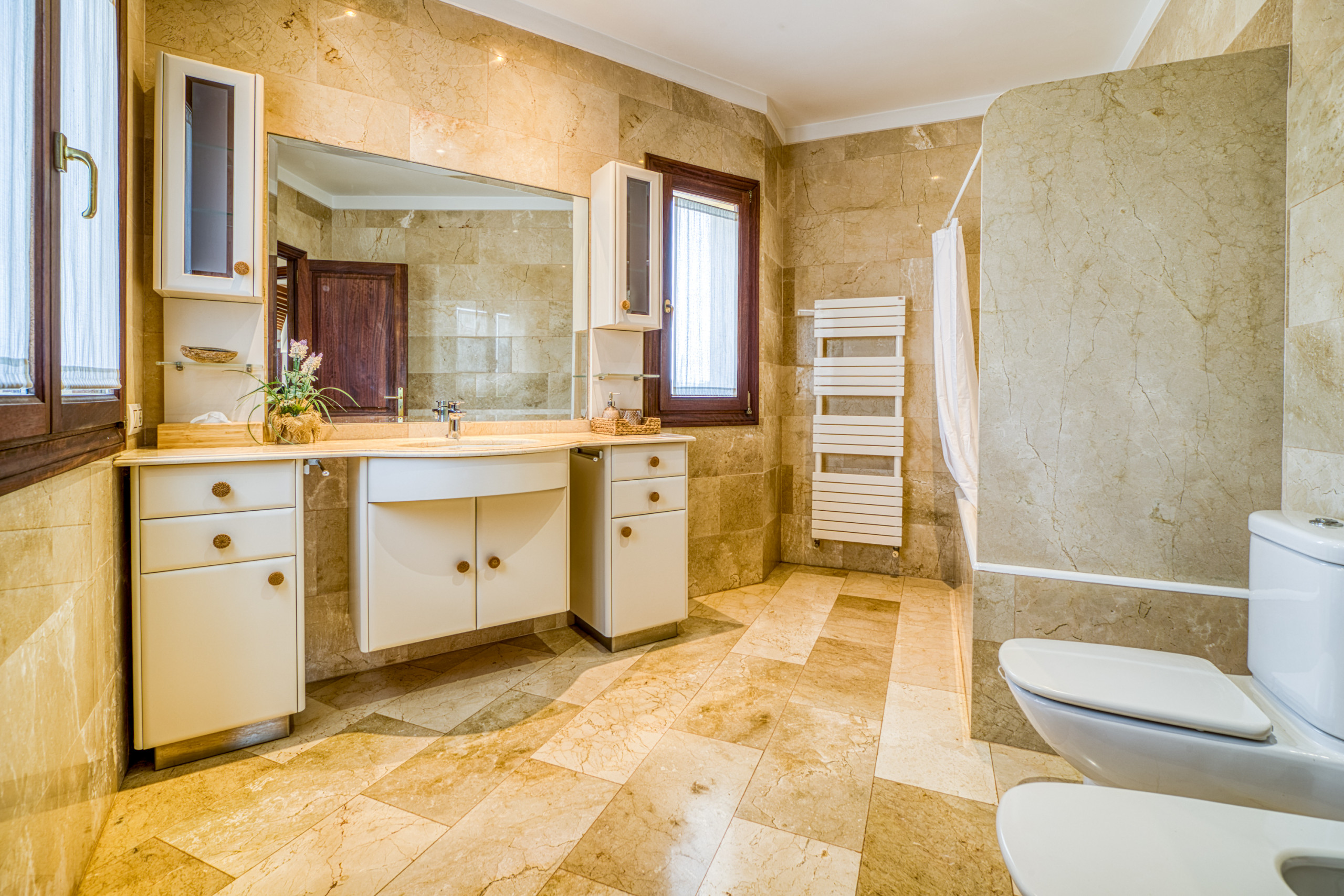 Ubicada en una amplia parcela de 11.211 m² y con 327 m² construidos, Villa Sorubin recibe hasta siete huéspedes en sus cuatro luminosos dormitorios. Cada espacio irradia una atmósfera moderna y acogedora, con sutiles toques rústicos que realzan el encanto tradicional de la isla. Los tres baños completos, todos con bañera, garantizan privacidad y comodidad para cada integrante del grupo.