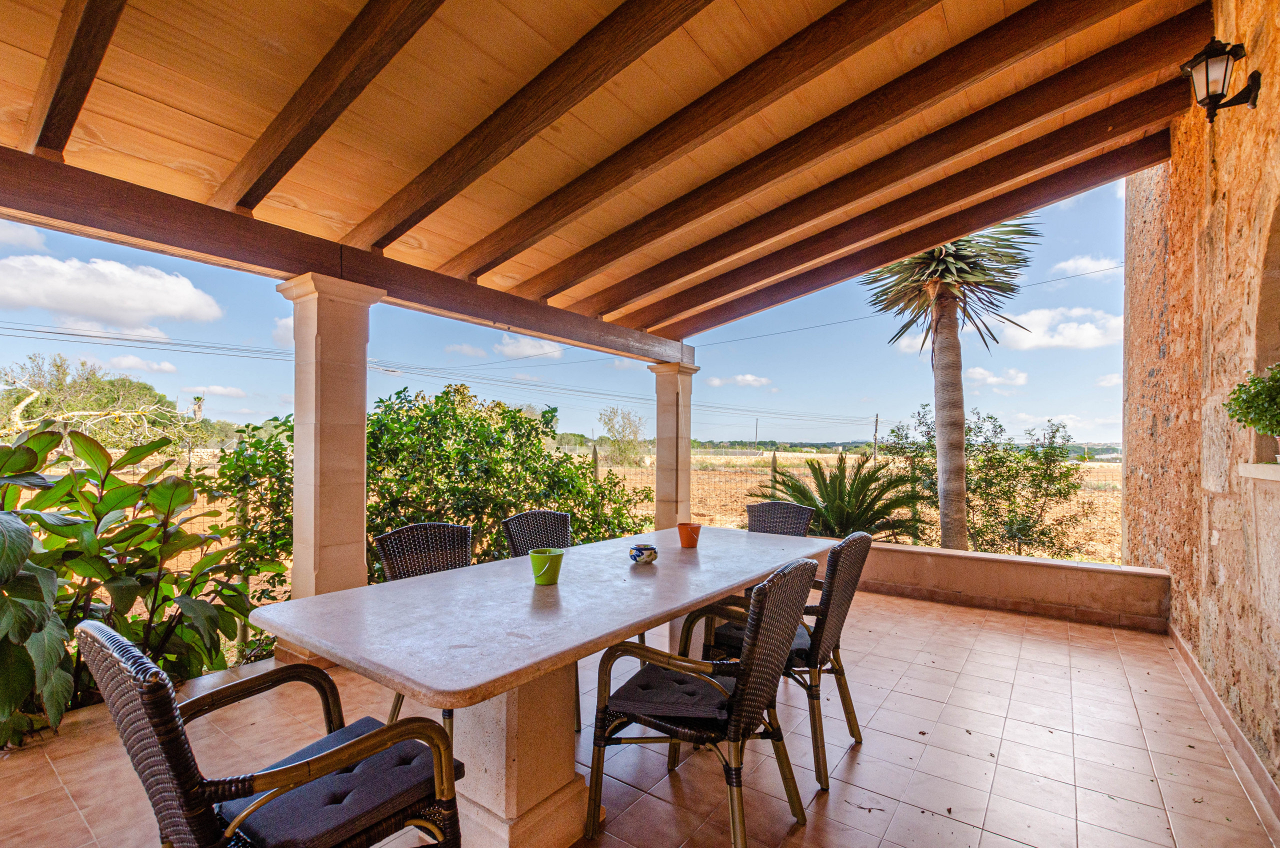 Esta hermosa casa se encuentra en el sur de Mallorca, a pocos kilómetros de la playa paradisíaca de Es Trenc, cerca del pueblo de Ses Salines y es ideal para familias hasta 6 personas.