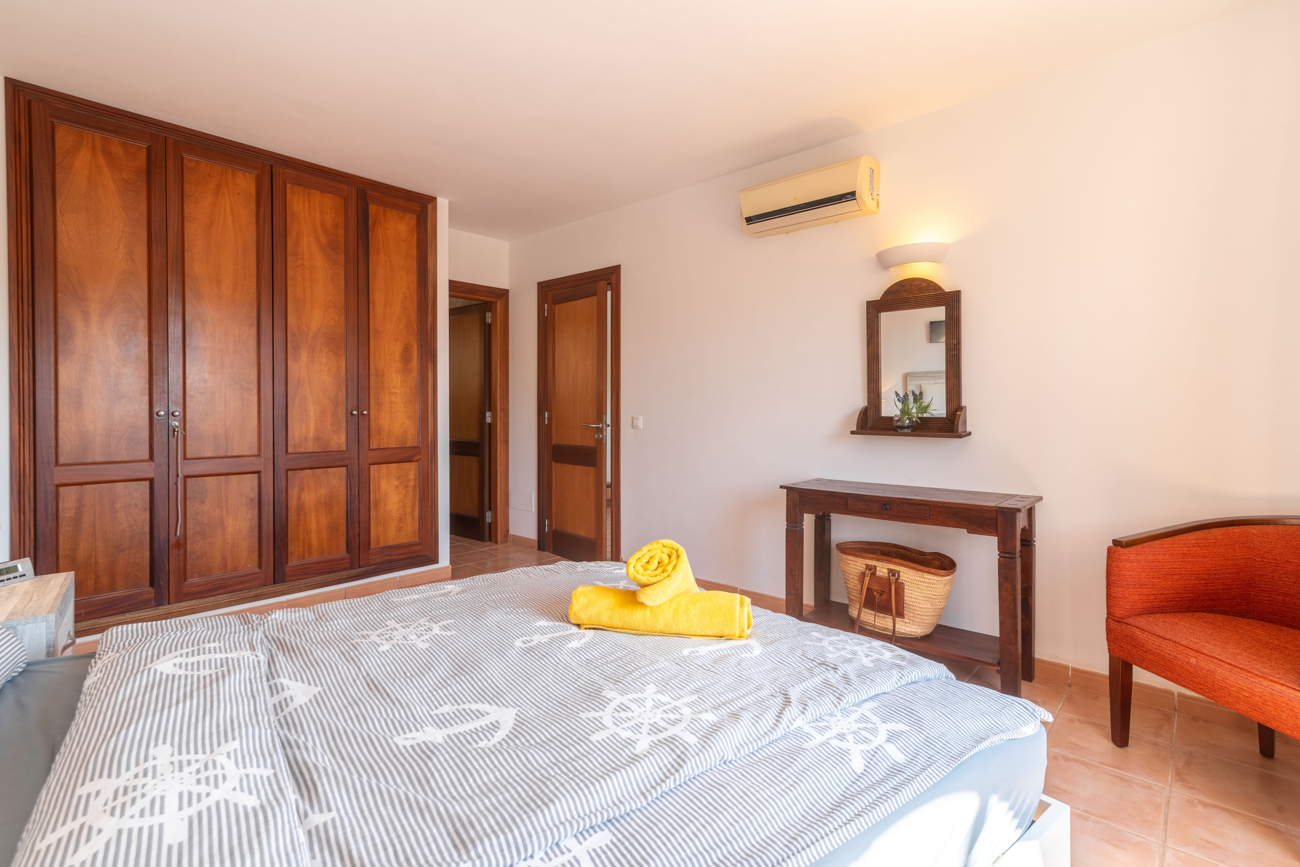 Das Haus bietet Platz für bis zu 4 Personen und verfügt über zwei Schlafzimmer im Obergeschoss, beide mit Klimaanlage.