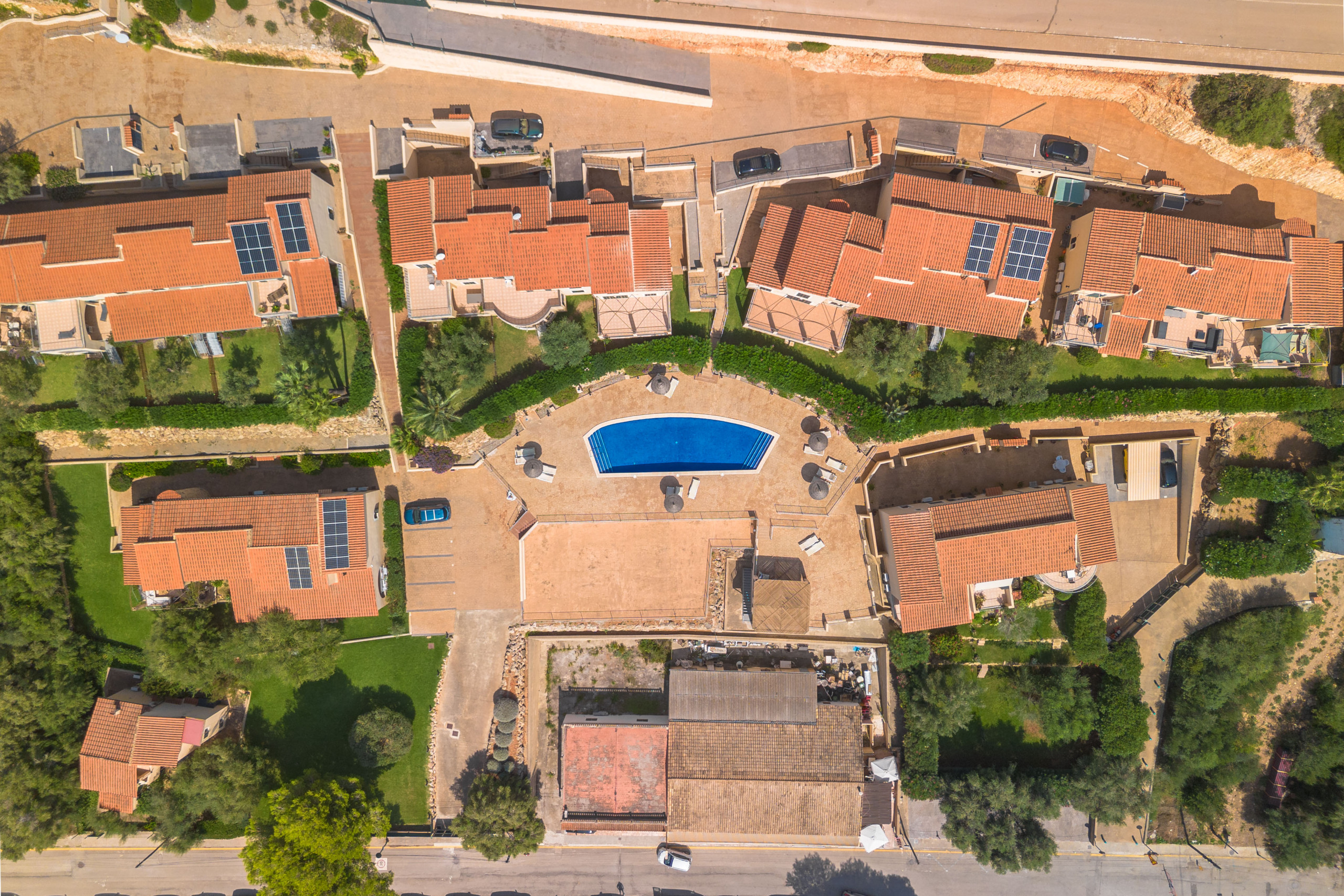 In der privaten Wohnanlage befindet sich ein gepflegter Gemeinschaftspool, perfekt zum Entspannen ohne das Gelände zu verlassen.