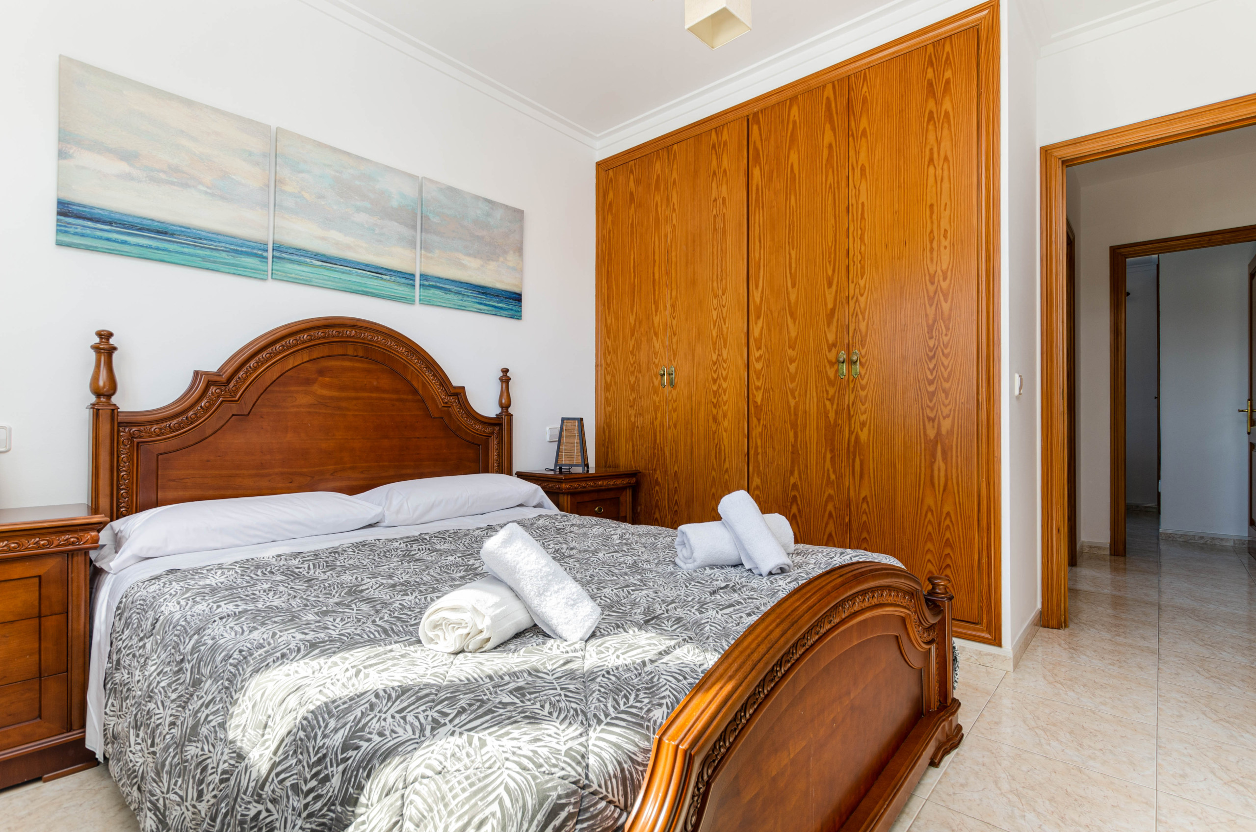 Dreistöckiges Reihenhaus, ideal für Ferien am Meer. Alle 4 Schlafzimmer und das Wohnzimmer sind klimatisiert. Im Erdgeschoss findet man den Wohnbereich, Küche und ein Bad. Drei weitere Schlafzimmer sowie ein Bad sind im 1. Stock zu finden, während das vierte Schlafzimmer mit Terrasse im 2. Stock liegt. Sie haben Zugang zu einer Garage mit Duschbad, Waschmaschine und Bügeleisen. Ein Babybett/Hochstuhl werden auf Anfrage bereit gestellt. Ein Auto ist nicht unbedingt notwendig, da sich alle wichtigen Services für einen Selbstversorgerurlaub in unmittelbarer Umgebung befinden.