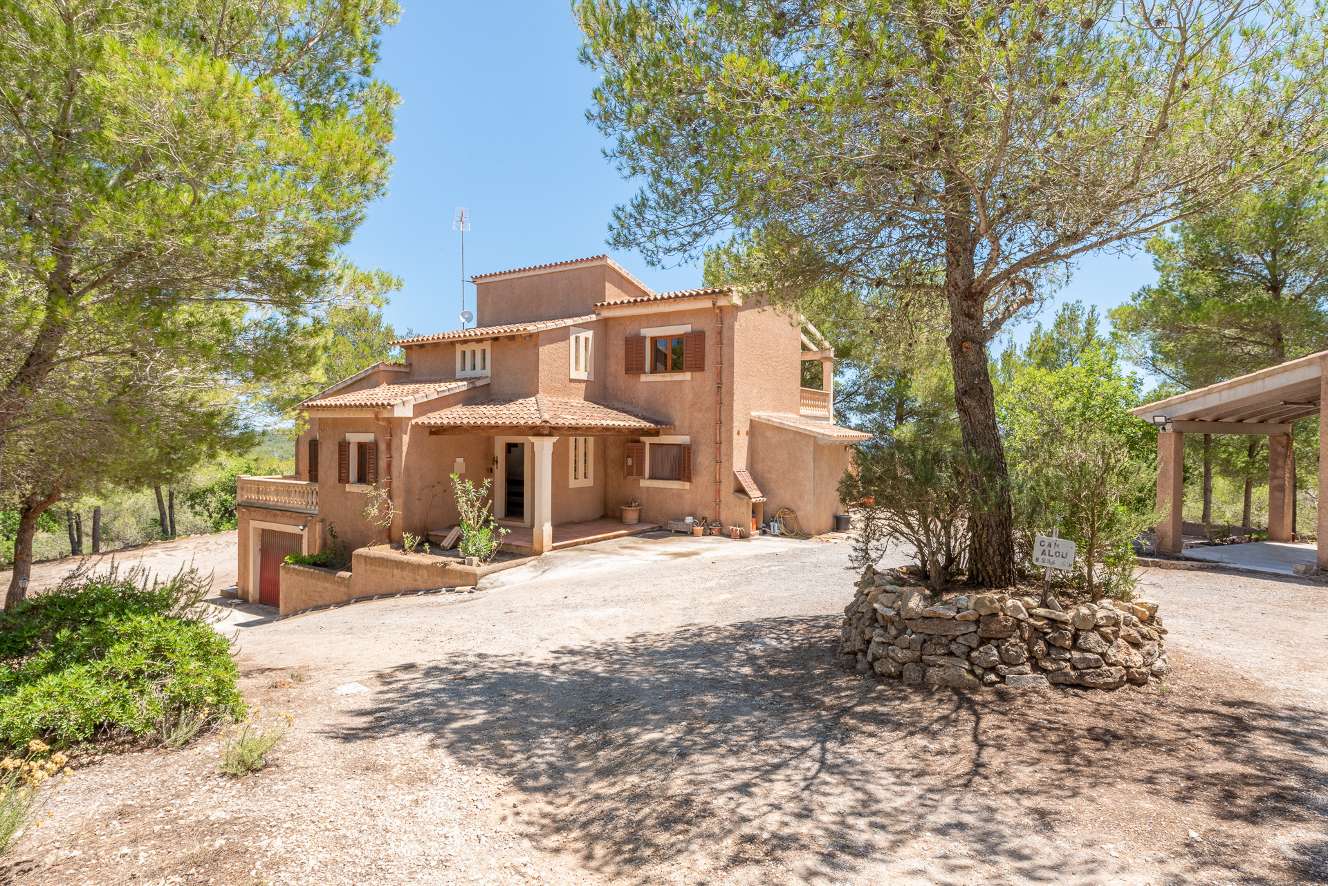 Finca Es Bosc de Ca n’Alou liegt auf einem Hügel umgeben von einem wunderschönen Pinienwald. Sie erreichen das Haus über einen Bergpfad, am Ende des Pfades befindet sich das Haus.