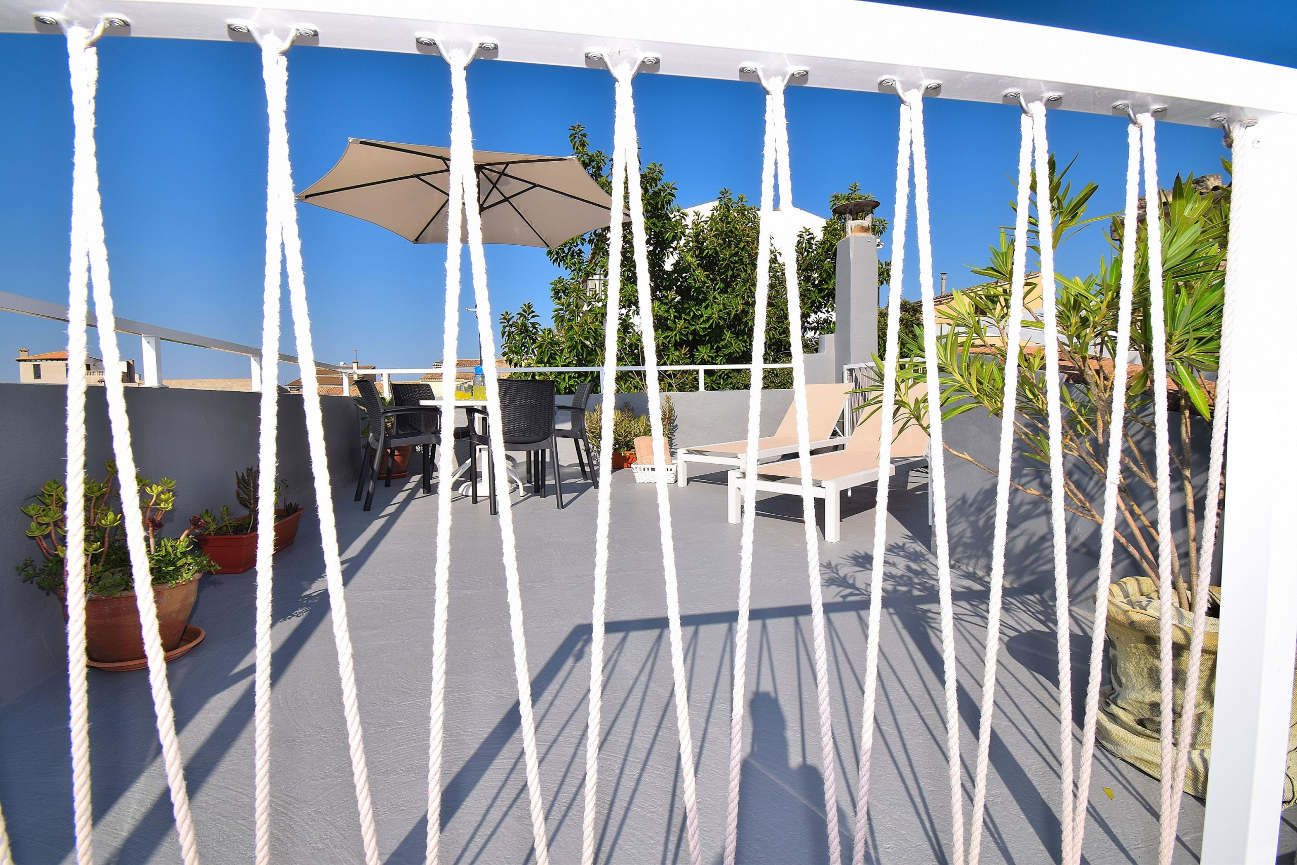 Auf der überdachten Terrasse befindet sich ein großer Esstisch, damit Sie Ihre Mahlzeiten im Freien genießen können. Mit dem Grill des Hauses können auch köstliche Barbecues zubereitet werden. Ob Fleisch, Fisch oder frisches Gemüse, lassen Sie Ihrer mediterranen Kochkunst freien Lauf und genießen Sie die frischen lokalen Produkte auf dem Grill Ihres Urlaubs.