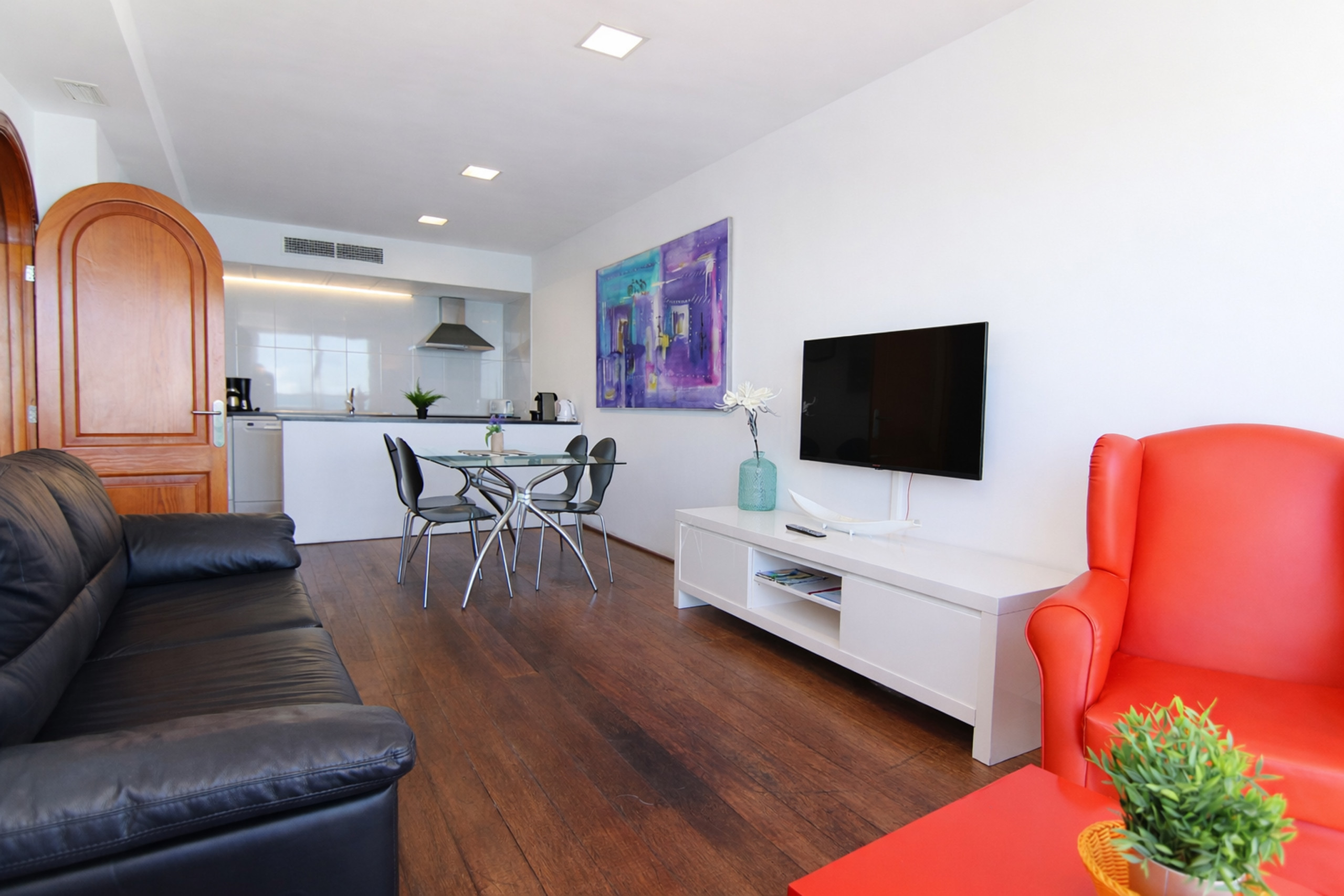 Die Wohnung befindet sich im zweiten Stock des Gebäudes (ohne Aufzug). Das Herzstück des Hauses ist der Wohn-Essbereich mit Meerblick, ideal zum Entspannen nach einem Tag am Strand. Die offene Küche mit amerikanischer Theke integriert sich in die Atmosphäre und ist so ausgestattet, dass Sie bequem kochen können.