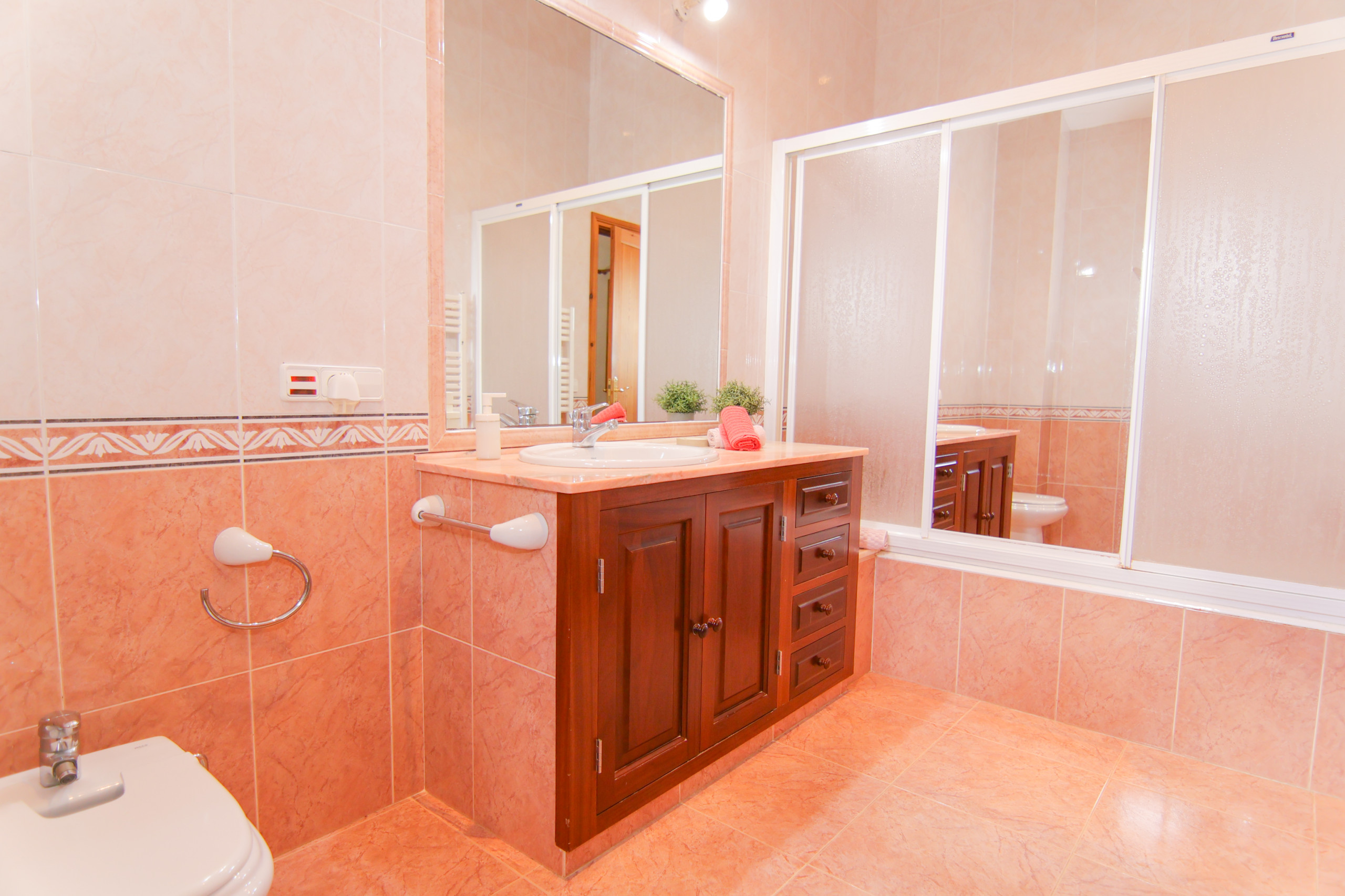 Es verfügt über 3 Schlafzimmer (zwei mit Doppelbett und eines mit 2 Einzelbetten). Im Erdgeschoss befindet sich die voll ausgestattete große Küche mit einem großen Esstisch. Der Eingang des Hauses ist ein Wohnzimmer mit Sofa, TV... und einem Schlafzimmer. Ein Badezimmer mit Badewanne befindet sich ebenfalls im Erdgeschoss. Oben gibt es zwei weitere Schlafzimmer und ein Badezimmer.