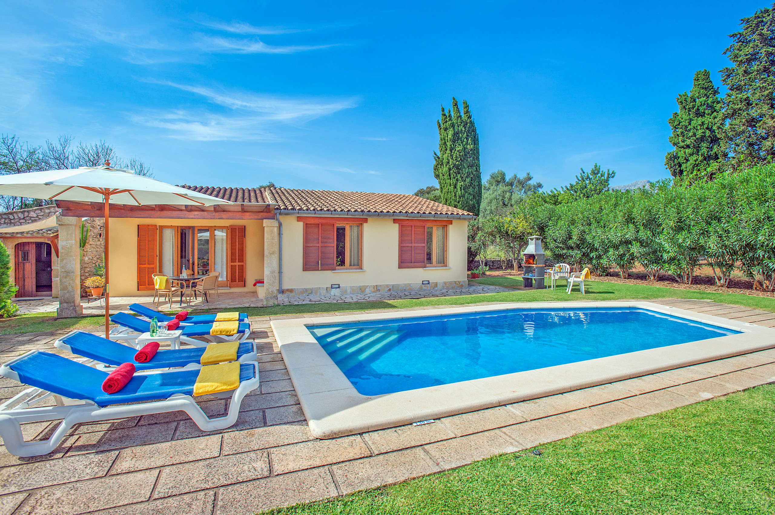 Dieses ländliche Anwesen mit privatem Pool liegt ruhig an den sanften Hängen des Berges Puig de Maria. Das 4.000qm große, private Grundstück ist komplett abgeschlossen und nur 3 Gehminuten von Pollencas Zentrum entfernt. Über die Straße, die sich hinter dem Denkmal des berühmten lokalen Dichters Miquel Costa i Lobera erstreckt, erreichen sie das im typisch mallorquinischen Stil erbaute Steinhaus. Von der, mit mediterranen Pflanzen geschmückten Außenterrasse, haben Sie einen einzigartigen Blick auf Pollenca und den dahinter liegenden Bergen. Direkt am Haus angebaut, ist die langgezogene, komplett überdachte Terrasse, die mit gemütlichen Gartenmöbeln bestückt ist. Hier können Sie Ihre Mahlzeiten genießen oder in gemütlicher Runde leckere Grillgerichte zubereiten. Zu diesem Zweck steht Ihnen ein gemauerter Grill zur Verfügung. Der Einstieg in den 9x4m großen Pool ist mit römischen Treppen versehen. Auf der gepflegten Rasenfläche um den Pool können Liegestühle und Sonnenschirme aufgestellt werden, die in ausreichender Menge vorhanden sind. Auf dem geschlossenen Parkplatz können Sie in Sicherheit Ihren Wagen parken.