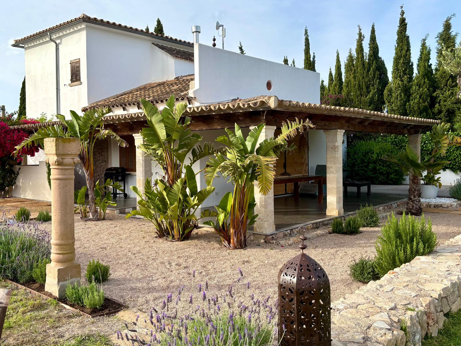 Mit 180 m² Wohnfläche und umgeben von einem privaten Grundstück von 9.000 m², das vollständig eingezäunt ist, bietet diese Immobilie einen intimen und sicheren Zufluchtsort, der perfekt für diejenigen ist, die Privatsphäre und Ruhe suchen. Ihr Design verbindet Modernität, Farbe und orientalische Elemente, die sowohl im Inneren als auch im Äußeren eine exotische Atmosphäre hervorrufen.