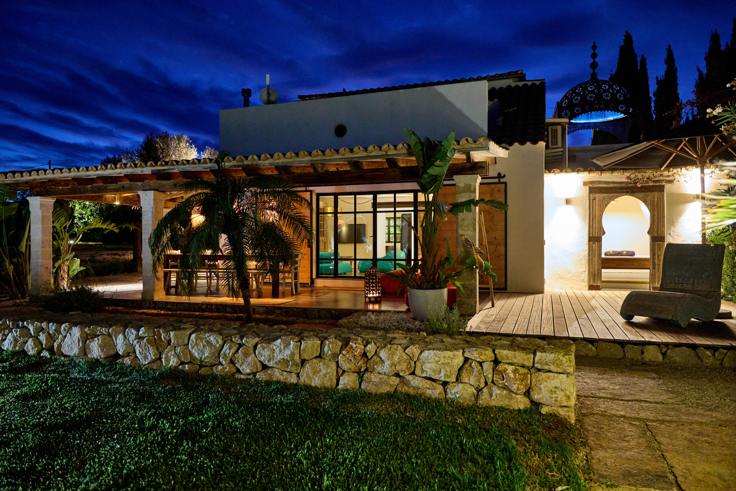 Zwei maurische Kuppeln erheben sich über dem Haus und dem Pool und schaffen eine einzigartige Landschaft, die sich gen Himmel zu erheben scheint. Von Beginn an vermittelt Finca Can Román Gran das Gefühl, an einen besonderen Ort gekommen zu sein: Ein Raum, der die Weite des Himmels, die Ruhe der Natur und das warme Gefühl, zu Hause zu sein, kombiniert.