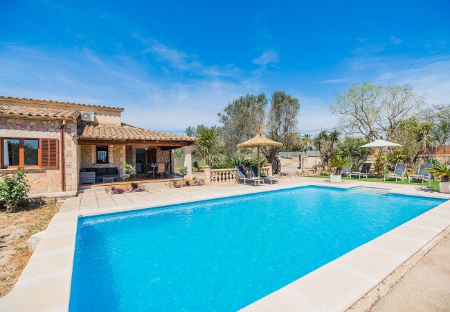 Auf halbem Weg zwischen Puerto Pollenca und Pollensa liegt diese schöne Finca mit privatem Pool und herrlichem Garten. Mediterranes Ambiente verbreiten die Blumenarrangements und Palmen rund um den Pool. Auf der gepflegten Rasenfläche im Poolbereich können Sonnenliegen und Sonnenschirme aufgestellt werden, so dass einem entspannenden Sonnenbad nichts mehr im Wege steht. Erfrischen können Sie sich anschließend in dem mit Treppeneinsteig versehenen Pool. Die überdachte Terrasse ist mit bequemen Möbeln ausgestattet und bietet somit ideale Bedingungen für gemeinsame Mahlzeiten im Freien. Im Grillbereich steht Ihnen ein gemauerter Grill zur Verfügung auf dem Sie leckere Gerichte zubereiten können. Eine möblierte Sonnenterrasse und eine Außendusche sind zu Ihrem Komfort ebenso vorhanden.