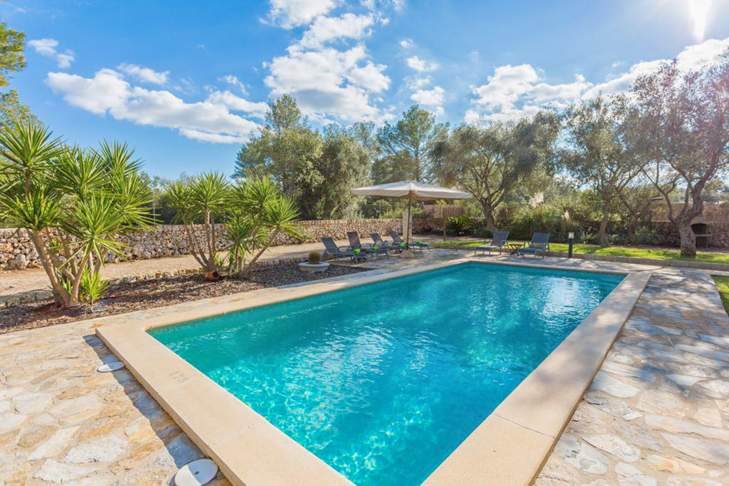Diese wunderschöne Finca in ruhiger Lage auf einem sehr gut gepflegten Naturgrundstück mit Pool, vielen Bäumen und Pflanzen verzaubert ihre Besucher mit ihrem herrlichen Ausblick und bietet viel Privatsphäre. An heißen Sommertagen können Sie sich im Pool erfrischen und sich anschließend im überdachten Terrassenbereich im Schatten entspannen. Die bequemen Sonnenliegen sind bereits für Sie vorbereitet.