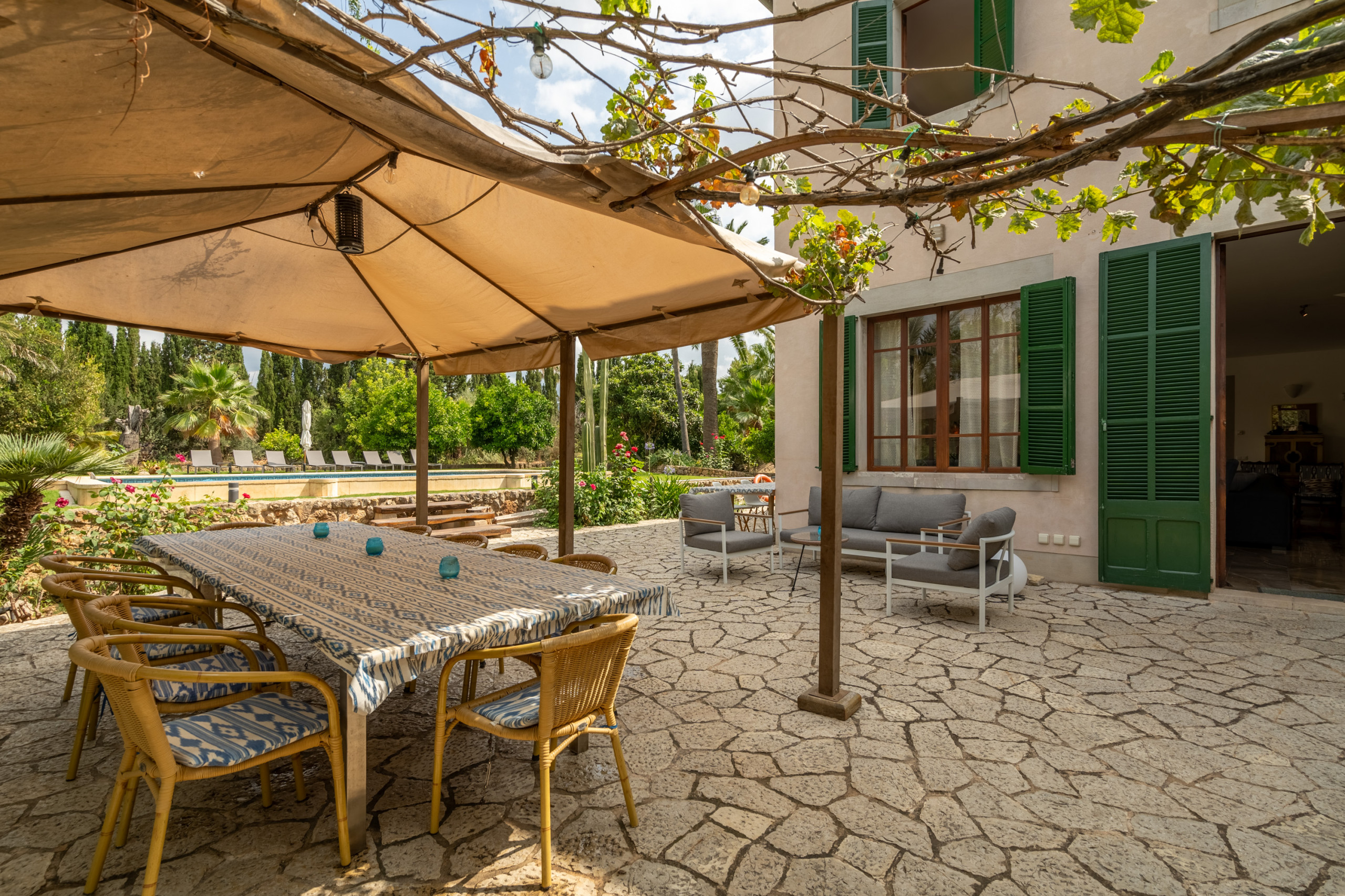 Bidaluxe, verwaltet von 5StarsHome, einem führenden Anbieter von Ferienunterkünften auf Mallorca und Ibiza, bietet Ihnen ein luxuriöses und komfortables Erlebnis in einer idyllischen Umgebung. Mit 6 Schlafzimmern und Platz für 12 Personen ist diese 350 m² große Villa mit einem 12500m² großen Grundstück perfekt für einen Familien- oder Freundesurlaub.