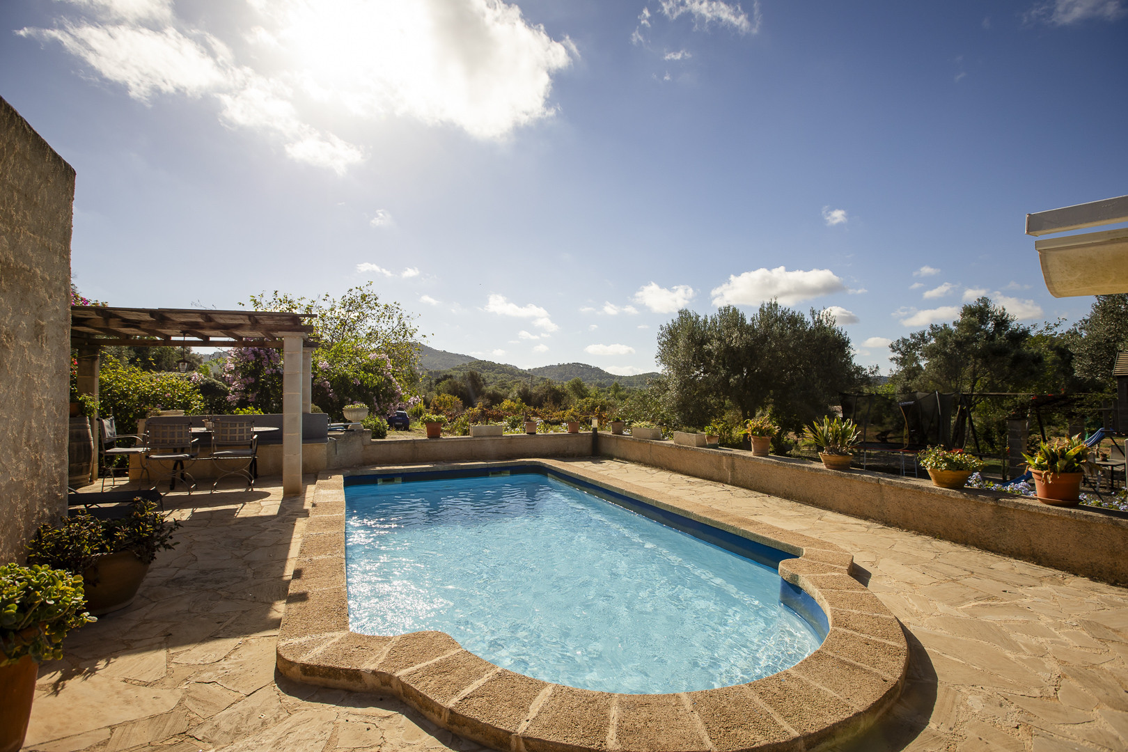 Die Villa verfügt über einen spektakulären Chlorpool von 7 x 3 Metern mit einer Tiefe zwischen 0,5 und 1,75 Metern, geeignet für Kinder und Erwachsene. Umgeben von einer großen Sonnenterrasse mit Liegen ist es der perfekte Ort, um unter der mallorquinischen Sonne zu entspannen. Der sorgfältig gepflegte Garten bietet eine ruhige und private Atmosphäre. Zusätzlich gibt es eine rustikale, möblierte Veranda, ideal für Mahlzeiten im Freien oder zum Grillen mit Familie und Freunden. Zur Bequemlichkeit gehören eine Außentoilette und eine Außendusche. Kinder haben ihren eigenen Spielbereich mit Rutsche. Der Parkplatz ist kostenlos und befindet sich außerhalb des Grundstücks.
