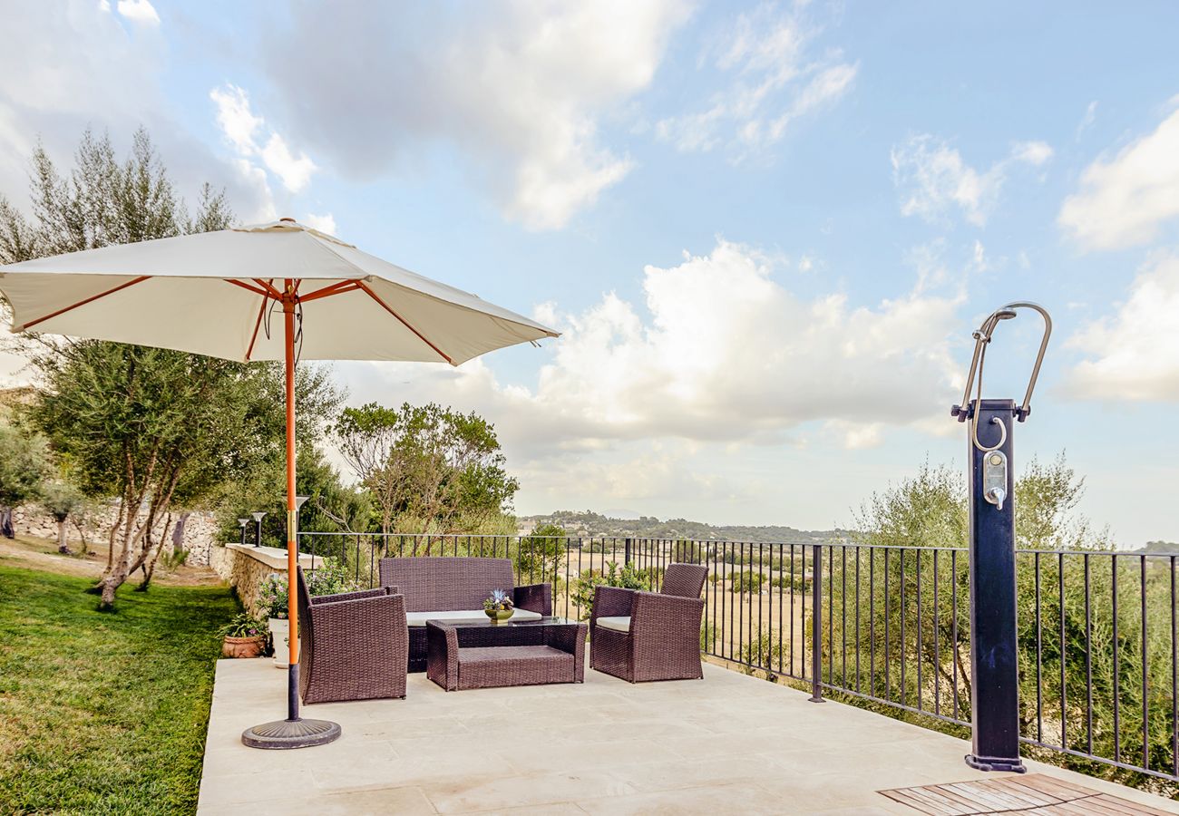Unser wunderschönes Ferienhaus " Es Turo David" liegt nur einen guten Kilometer vom Ortskern entfernt, was bedeutet Einkäufe und Restaurantbesuche sind schnell zu erreichen. Hinter dem Grundstück hat man die Möglichkeit über einen Wanderweg zu einer Aussichtsplattform zu gelangen. Von hieraus genießt man einen malerischen Ausblick über üppige Olivenhaine. Für uns ein Traumplätzchen zum Picknicken mit der gesamten Familie. Wer doch lieber zu Hause bleibt kann es sich im Garten gemütlich machen oder ein paar Bahnen im riesigen Infinity-Pool (18m X 3m) ziehen. Die gleich danebenliegende Chill-out Terrasse mit Fernblick ist perfekt zum Lesen, Chillen und Durchatmen. Das umliegende Land ist reich bepflanzt, vor allem mit Olivenbäumen aus denen noch produziert wird. Die Eigentümer stellen konservierte Oliven aus Eigenanbau, selbstgeerntete Artischocken und Kaktusfeigen für unsere Gäste zum probieren bereit. So könne alle Eoin Stück authentisches Mallorca probieren und als Urlaubserinnerung mit nach Hause nehmen. Ihre Mietwagen können sie bequem direkt auf dem Grundstück parken.