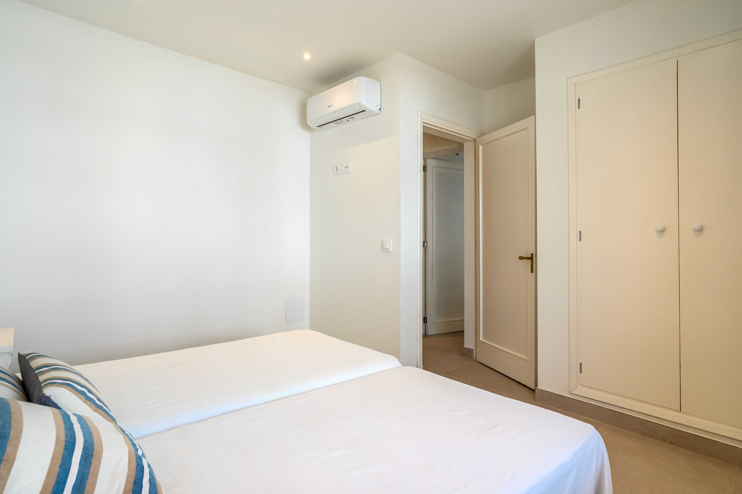 Die obere Etage beherbergt drei Schlafzimmer, alle mit Klimaanlage. Das Hauptschlafzimmer verfügt über ein Doppelbett und ist besonders hell. Die beiden anderen Schlafzimmer haben jeweils zwei Einzelbetten (90 x 200 cm). In dieser Etage befindet sich auch ein geräumiges Badezimmer mit Badewanne und Doppelwaschbecken.