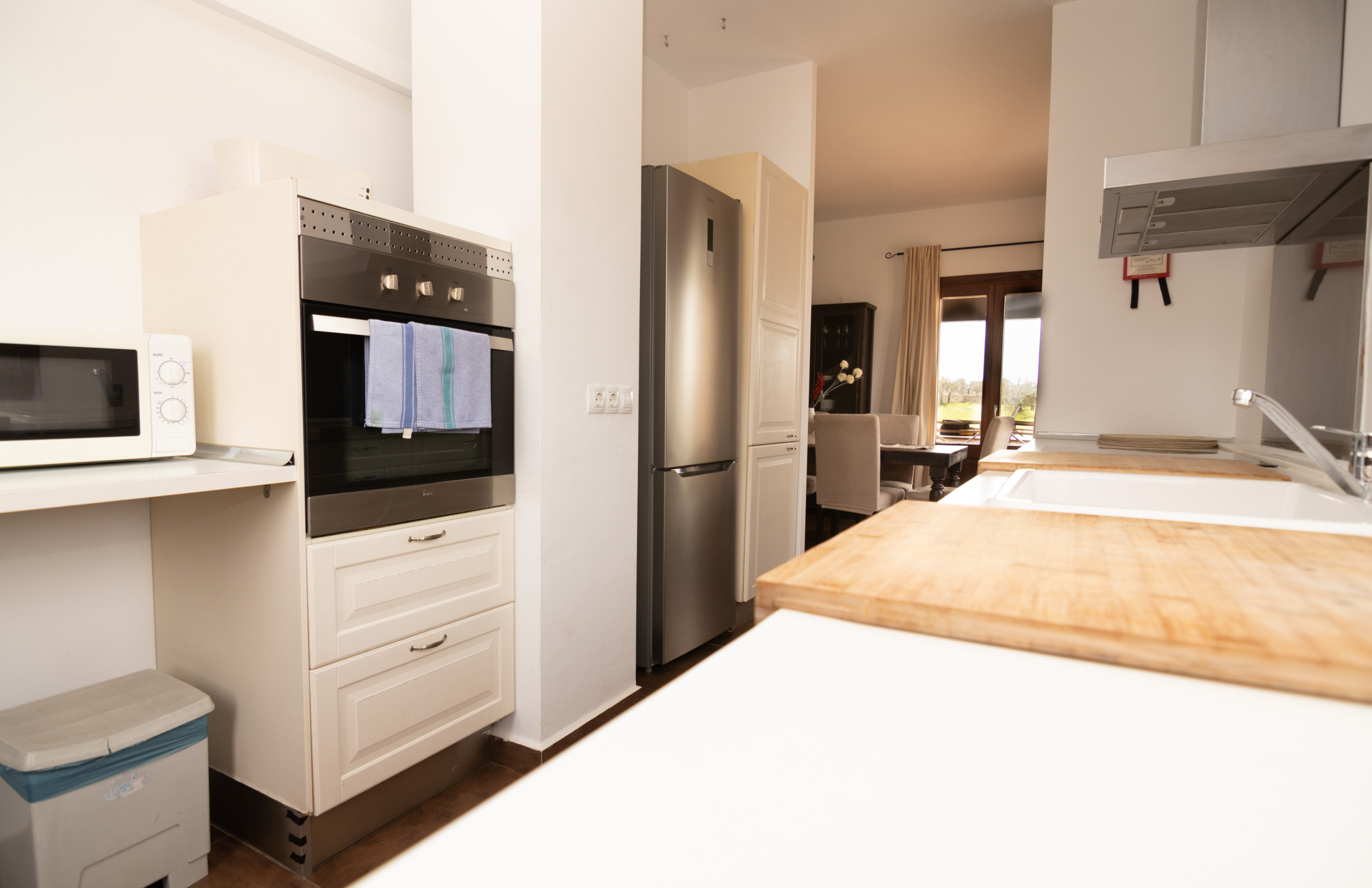 Die Küche ist komplett mit modernsten Haushaltsgeräten ausgestattet, einschließlich Kühlschrank, Gefrierschrank, Waschmaschine, Geschirrspüler, Backofen, Mikrowelle, Kaffeemaschine, Toaster und Wasserkocher. Darüber hinaus verfügt sie über alle notwendigen Küchenutensilien, um köstliche Mahlzeiten zuzubereiten.