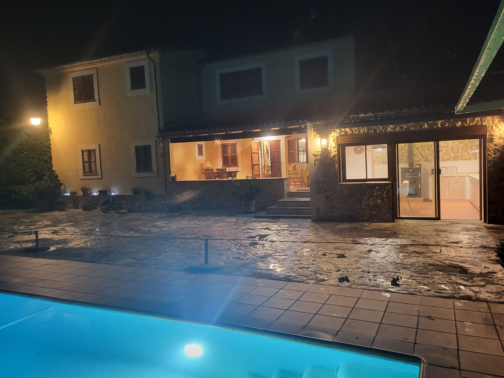 Diese charmante Finca bietet einen 9 x 4 Meter grossen, privaten Chlorwasserpool der maximal 1.2 Meter tief ist. Rundherum kann man sich auf der Sonnenterrasse mit 6 Liegen und Grillbereich entspannen. Die geräumige möblierte Veranda lädt zum Entspannen ein.