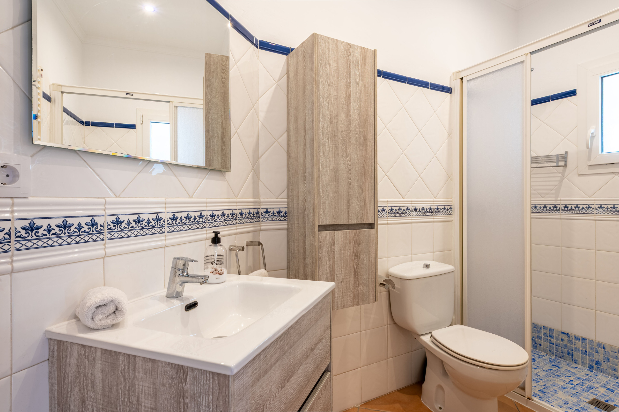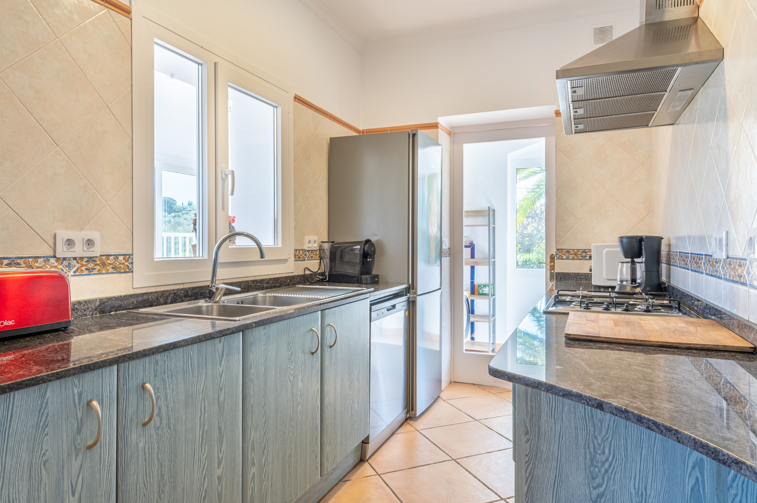 The kitchen is fully equipped with modern appliances, such as a fridge, freezer, microwave, oven and dishwasher. Additionally, it includes crockery, cutlery, cooking utensils and small appliances like a coffee maker, toaster, kettle and juicer, which allows you to prepare your meals with total comfort.