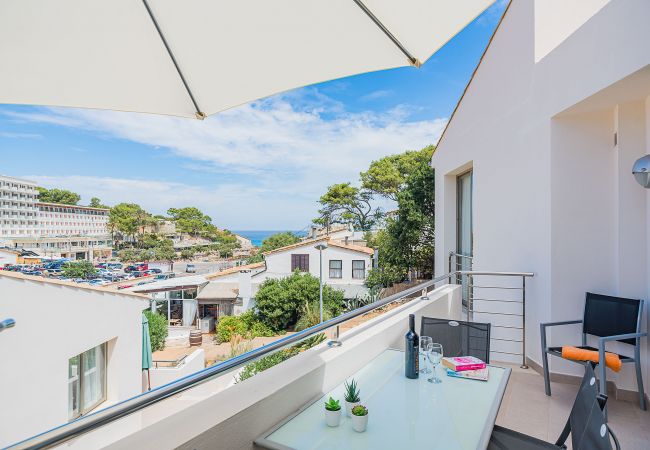 Precious house 50 metres from the sandy beach of Cala Molins in Cala San Vicente. Can Botana House 7 has 2 double bedrooms and 1 bedroom with two single beds. It also has 2 bathrooms equipped with a shower. There is a balcony with chairs and tables for outdoor dining and enjoying the views offered by Cala Molins. We offer a total of 4 (numbers 2, 3, 4, 7) identical terraced houses for holiday rental, all in the same complex with a communal swimming pool, with modern furniture and a fully equipped kitchen. There is air conditioning in all areas, bedrooms and living room. All houses have wifi internet access. Cala San Vicente has shops, supermarkets, bars and restaurants and can be easily reached on foot. It is an ideal place for all beach lovers looking for a comfortable, peaceful and contemporary accommodation.