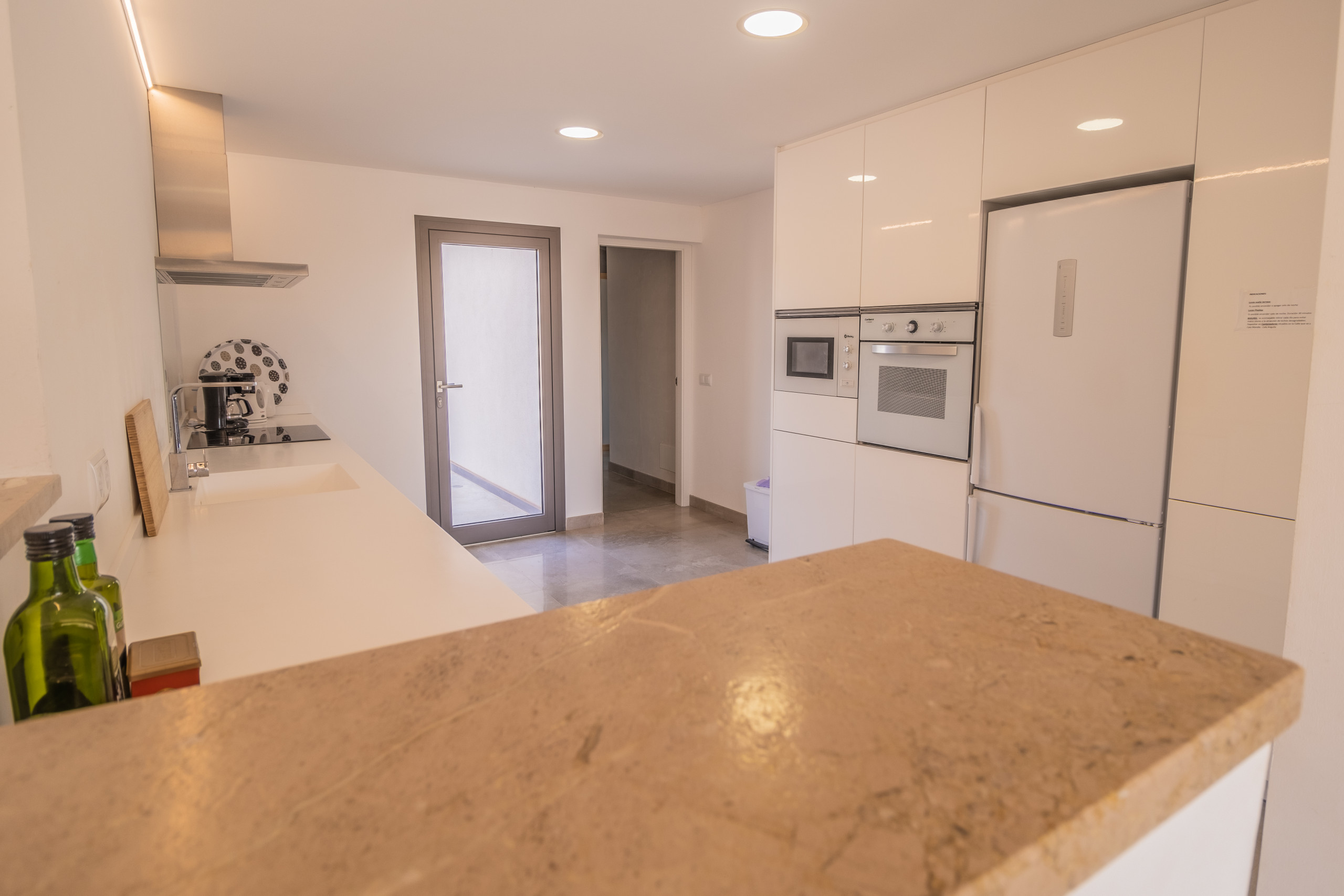 Inside, the independent and fully equipped kitchen has modern appliances: electric hob, fridge, microwave, oven, freezer, dishwasher, washing machine, tumble dryer, coffee maker, kettle, toaster and juicer. The house also includes an iron, hairdryer and satellite TV in various languages (Spanish, English, German).