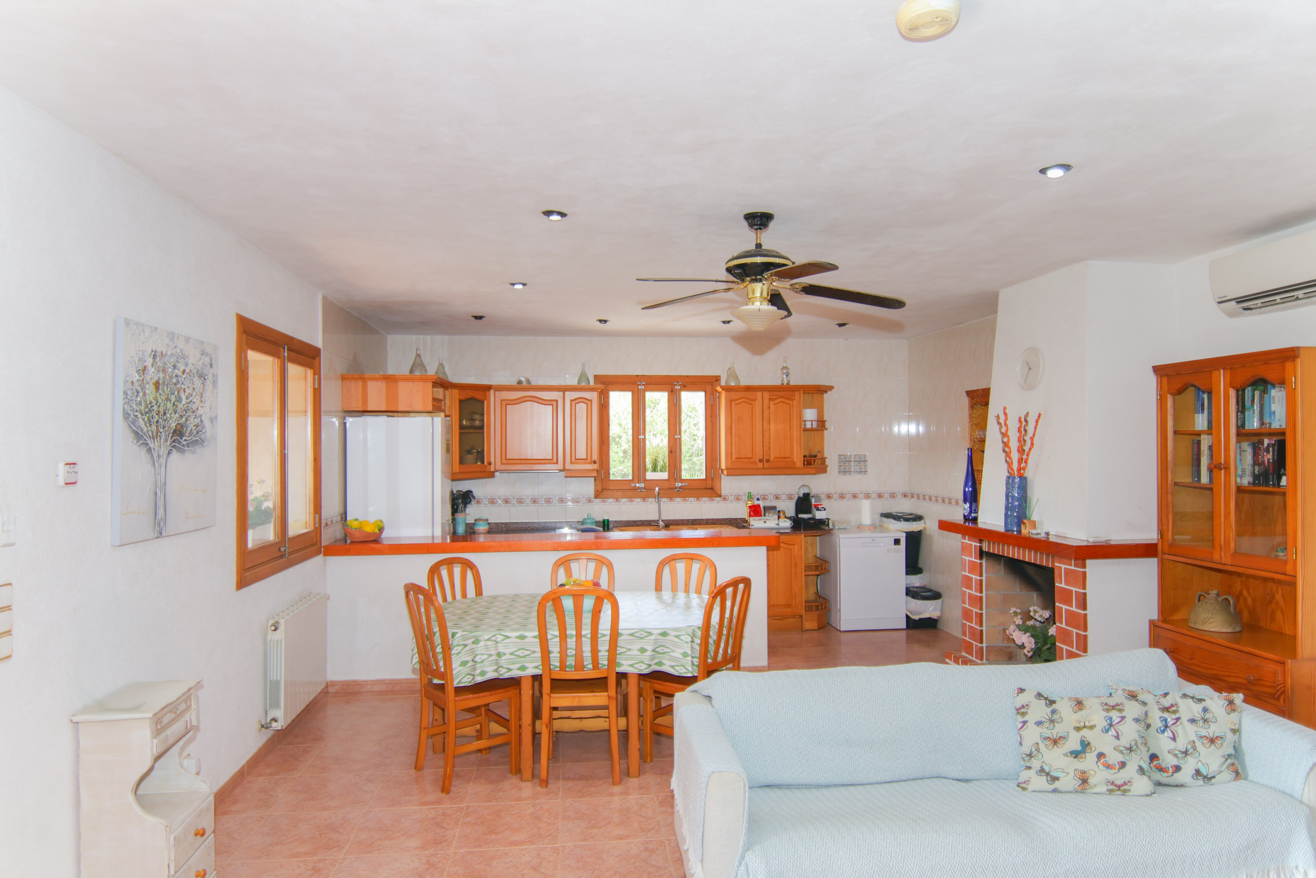 The typical Mallorcan farmhouse has 120 m² of habitable space and is prepared for 6 people. It offers a cosy living-dining room with sofas, satellite TV and WiFi. The fully equipped kitchen is located next to the comfortable living room where there is a large table.