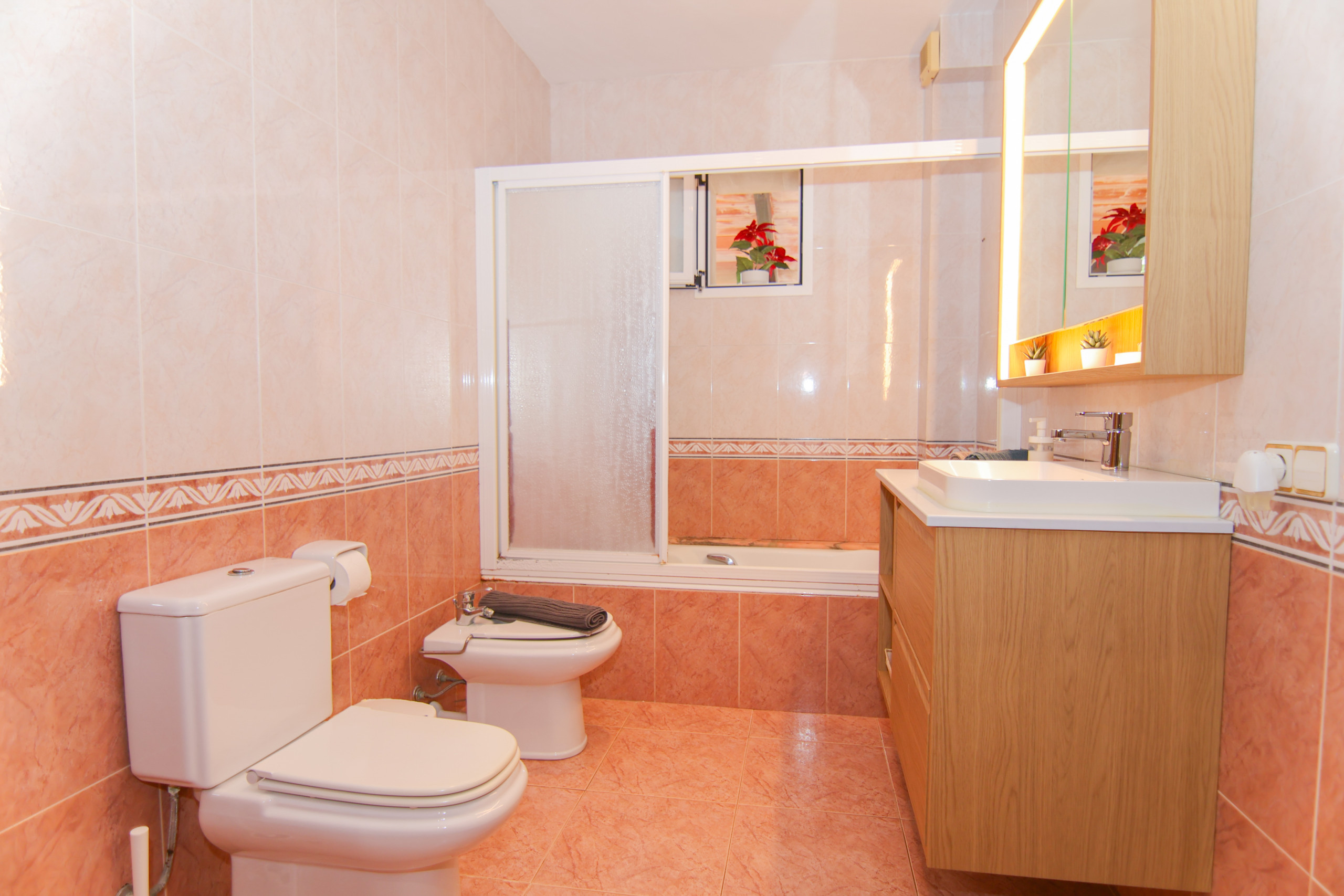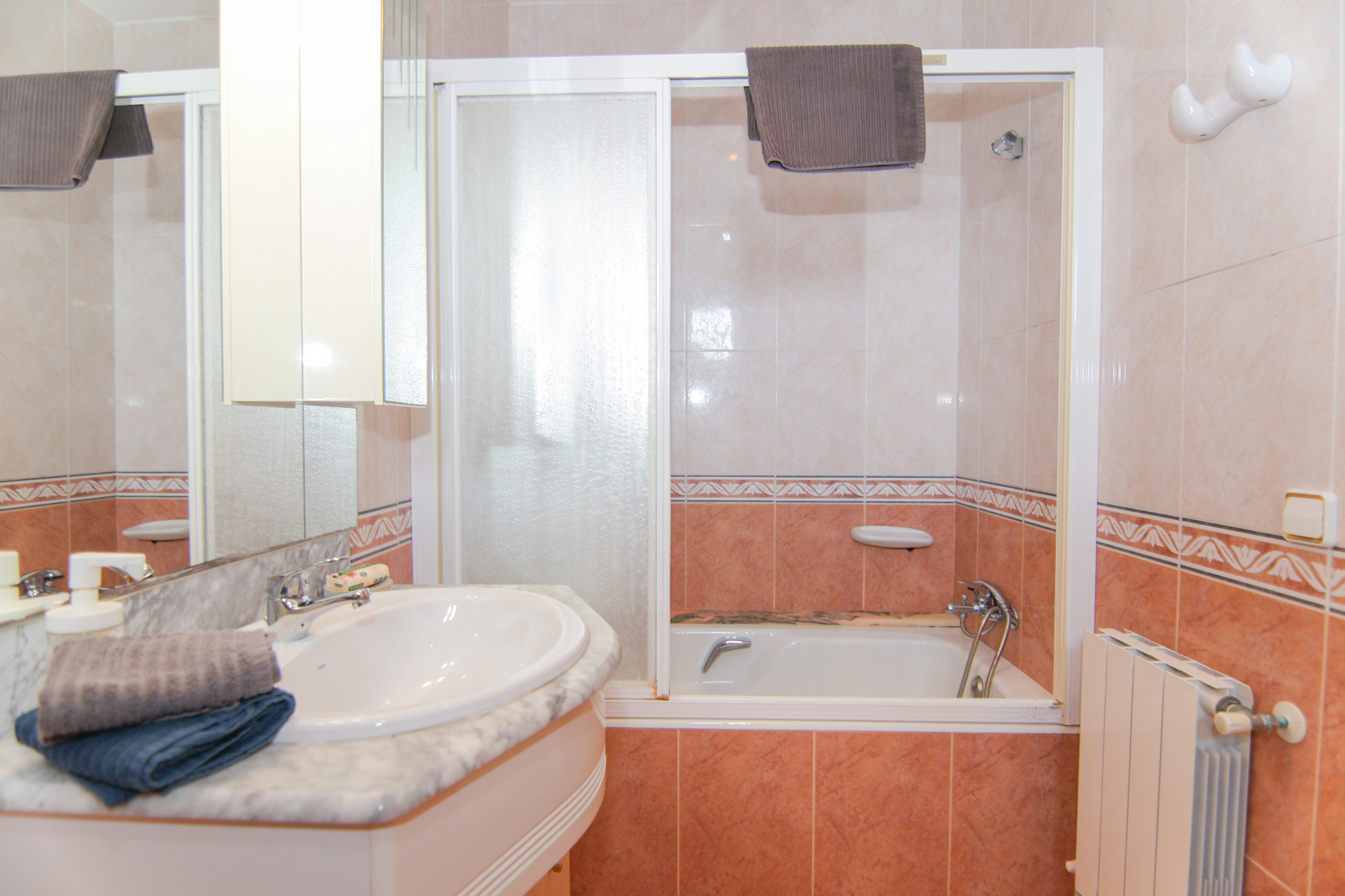 Three bedrooms, one double with en-suite bathroom and jacuzzi, two other bedrooms, one with a double bed and another with two beds and two more bathrooms with shower.