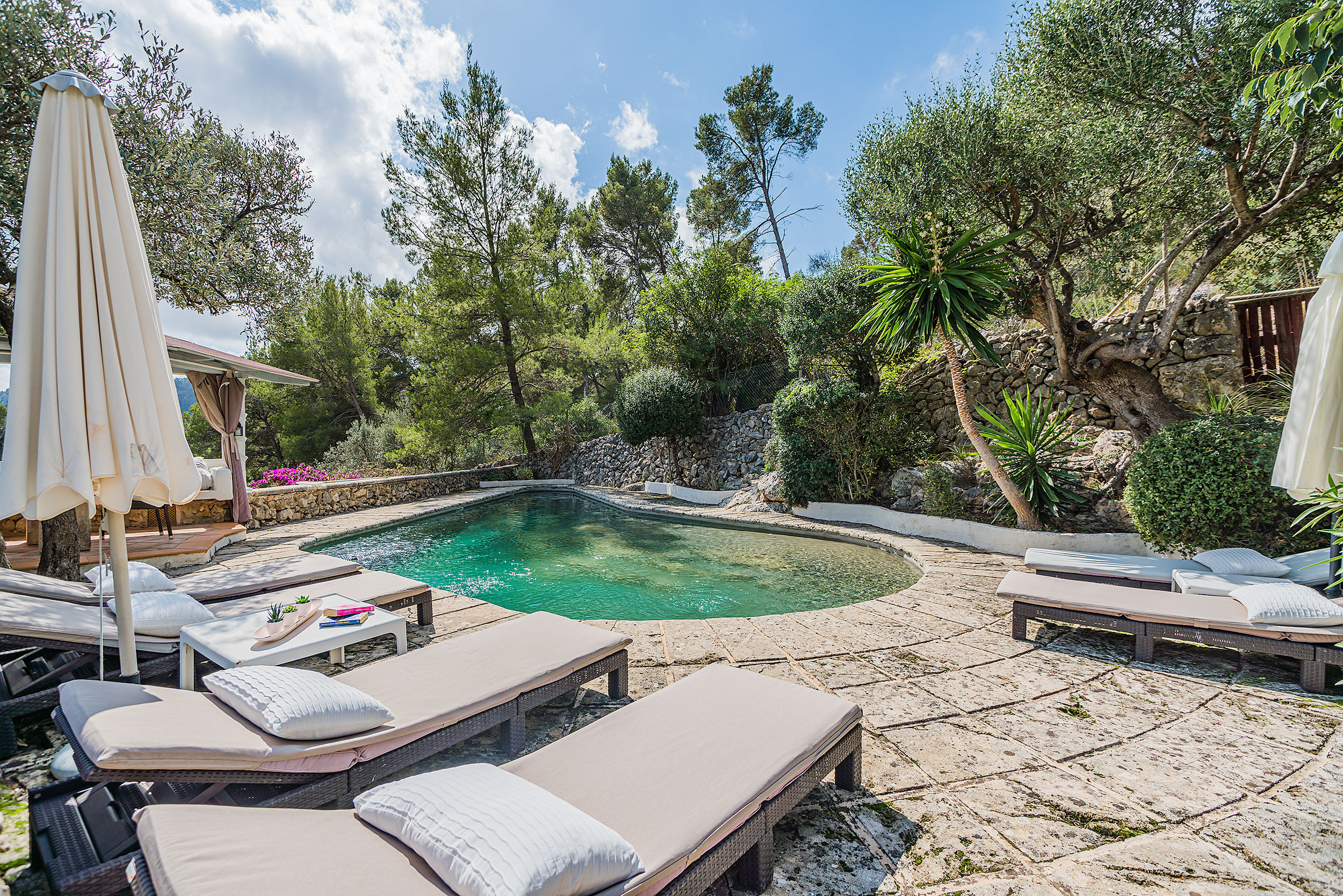 Cal Xino is a beautiful secluded villa accessed along a winding driveway. There is ample parking at the property for a number of cars. The villa boasts a guest house, sauna, ping pong table and precious views towards the Tramuntana mountains.