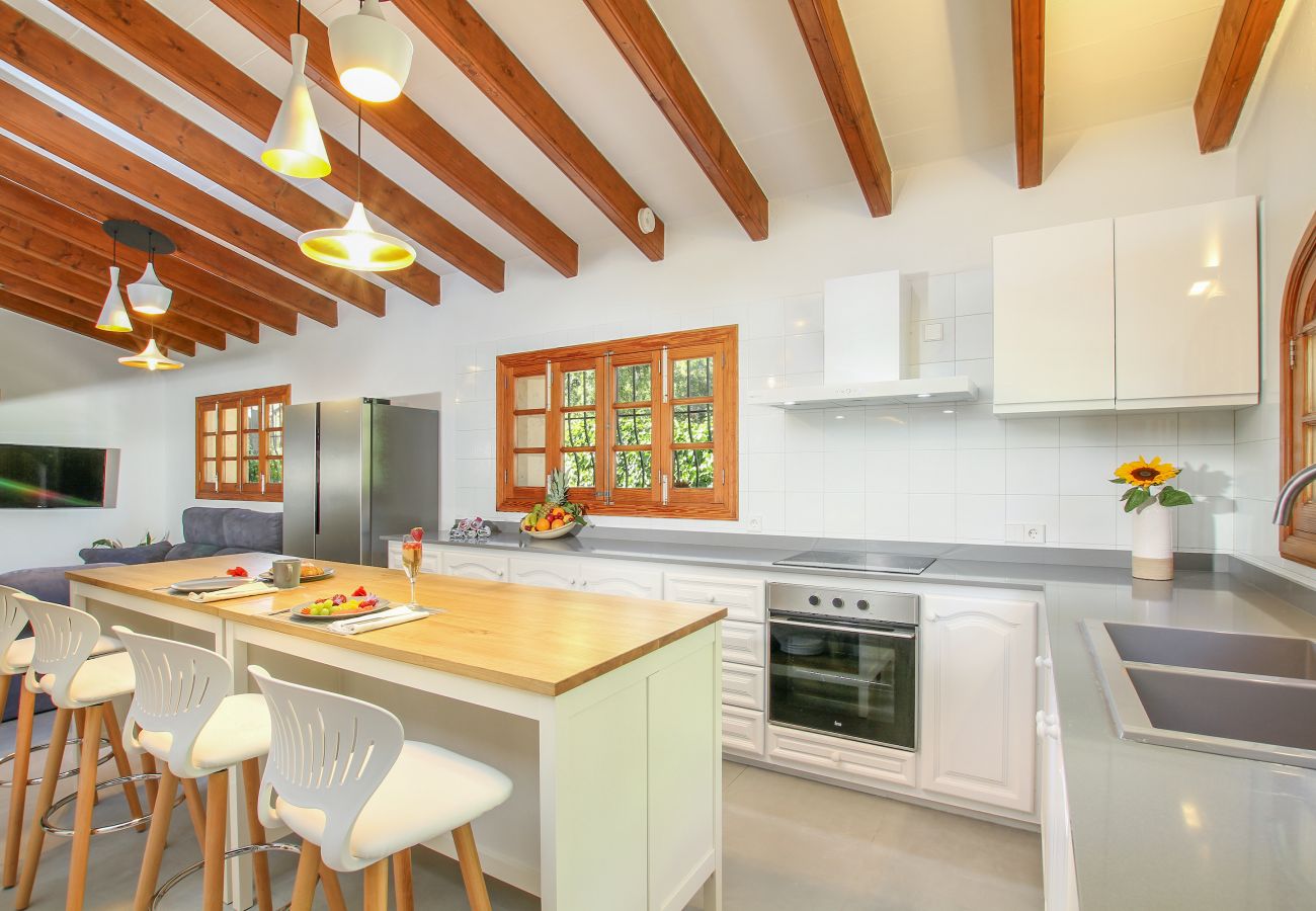With su can access the fully equipped kitchen that still preserves the old fireplace (currently disabled) typical of old Majorcan houses.